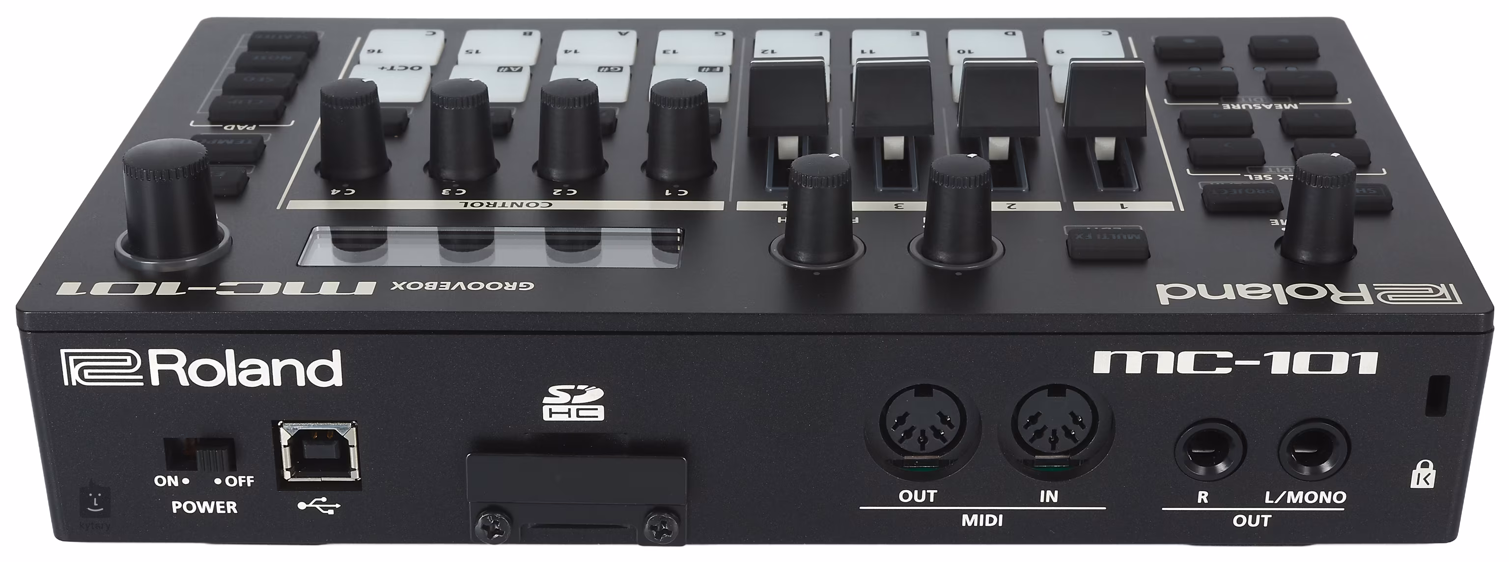 Az MC-101 egy professzionális készülék a zenekészítéshez, amely hangszínek és képességek terén számos tulajdonságát örökölte nagyobb testvérének, az MC-707-nek. A kis méret viszont számos előnnyel jár együtt. Az MC-101 masszív, mégis könnyű súlyú és akár öt órán keresztül működik 4 db AA elemmel, így szinte bárhol és bármikor készen áll hangszínek megformálására, dob-pattern-ek létrehozására és zenék komponálására. És itt nem csupán egy scratch pad-ról van szó egyszerű ötletek megvalósításához. Teljes értékű, profi sávokat is létrehozhatsz vagy zenei alapokat az élő előadáshoz.