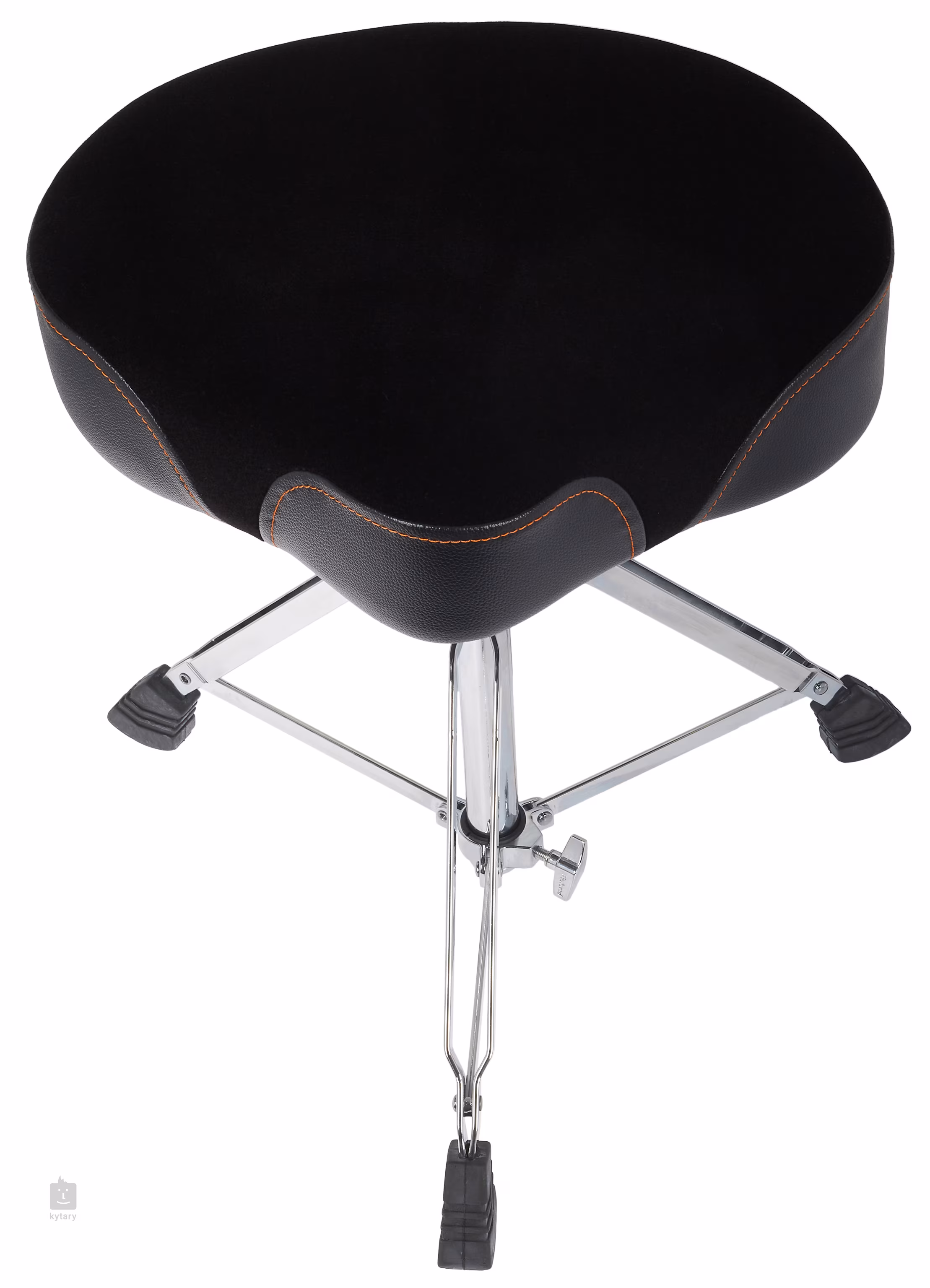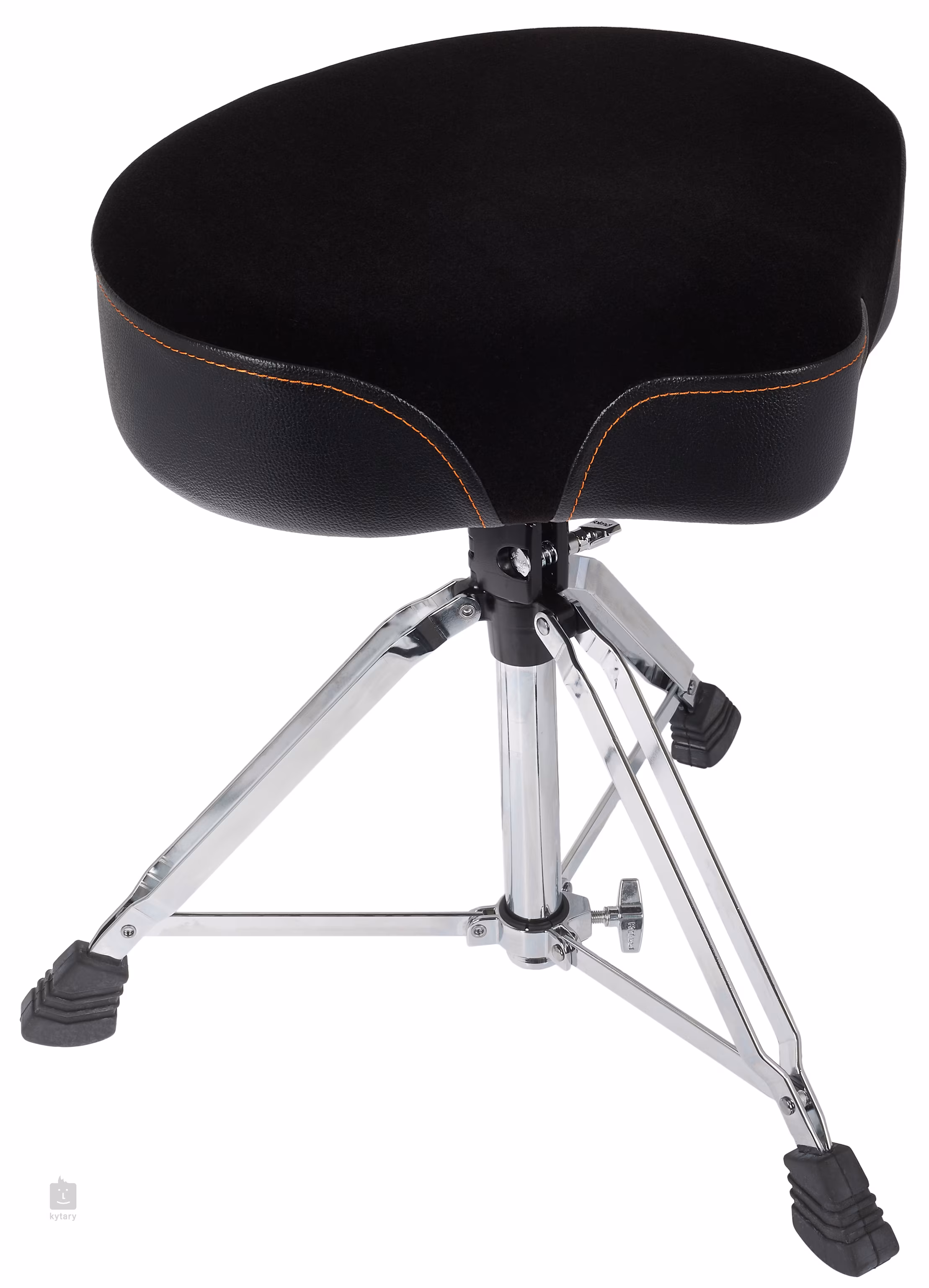 Maximális kényelmet és stabilitást biztosító professzionális dobosülés. A formázott ülés oldalt vinillel borított, a töltelék habszivacs, amely enyhíti a nyomást a leginkább igénybevett területeken, a légáteresztő bársonyfelület (velúr) pedig csökkenti a hőt. A masszív konstrukció egy ikerlábakkal ellátott állványból áll, a tartós fémtartó pedig egyszerű csavaros rendszert biztosít a magasságállításhoz.
