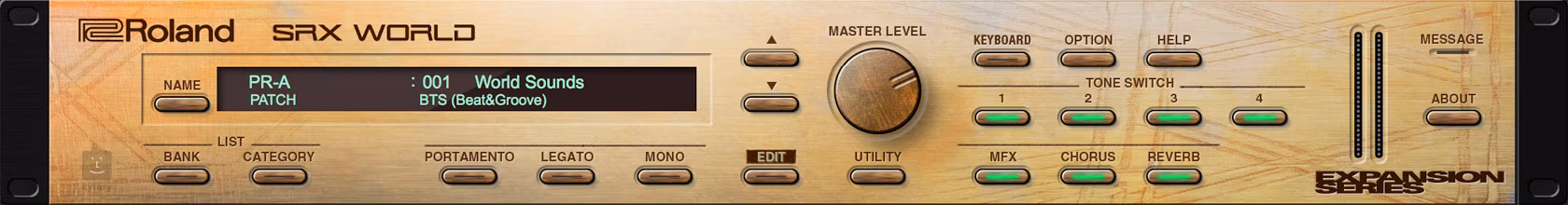 Az eredeti Roland SRX és SR-JV80 bővítőkártya-sorozat világzenei címei minden évben a legnépszerűbbek közé tartoznak. Az SRX WORLD ennek a sokszínű gyűjteménynek a hangjait egyesíti egy modern plug-inben, és a világ minden tájáról származó hangok lenyűgöző választékát mutatja be, hogy fokozza munkáját. Az Ázsiából, Latin-Amerikából, Európából és más régiókból származó egzotikus hangokat tartalmazó, praktikus virtuális hangszerrel könnyen hozzáadhat egy epikus dimenziót kreatív projektjeihez.