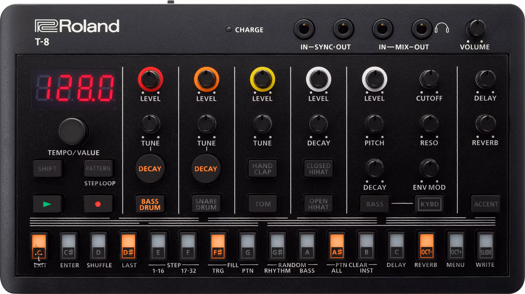 A kompakt kivitelben a TR-808/909/606 klasszikus analóg ACB technológián alapuló hangjai találhatók. Akár hét sávot is létrehozhatsz, emellett overdrive, sidechain, Reverb és Delay effektek állítható tempóval, 32 lépéses szekvenszerrel és tizenhat multifunkciós gombbal. A T-8 beépített Li-Ion akkumulátorral működik, amely akár 4,5 órás üzemidőt biztosít, így könnyedén komponálhat a parkban, a faházban vagy egy eldugott helyen az erdőben.