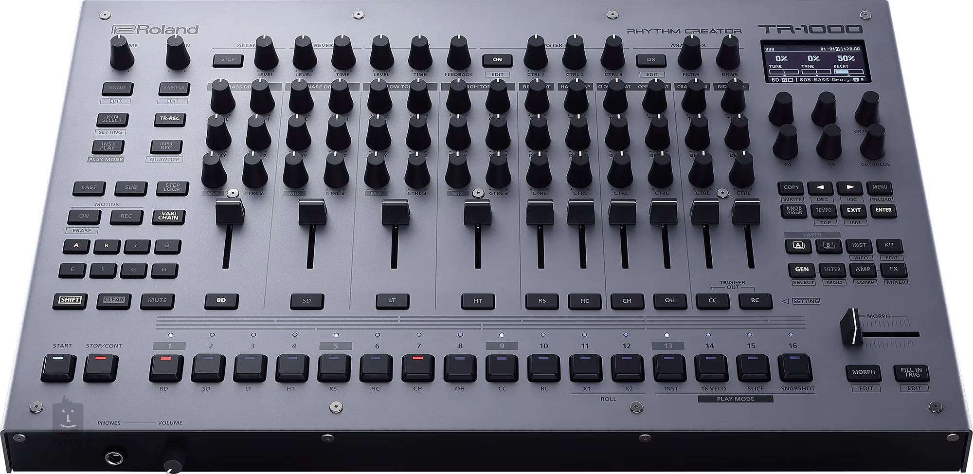 A Roland TR-1000 egy nagy teljesítményű ritmusgenerátor, amely a márka legismertebb dobgépek örökségére épül, és ötvözi az analóg melegséget, a digitális pontosságot és a sztereó mintavételezést egy modern eszközben, amely producerek, előadóművészek és hangtervezők számára egyaránt alkalmas. Egy dobozban kapsz klasszikus TR-munkafolyamatokat és mély hangtervezést, amellyel könnyedén hozhatsz létre groove-okat az alapoktól kezdve a kísérleti textúrákig, műfajokon átívelően.