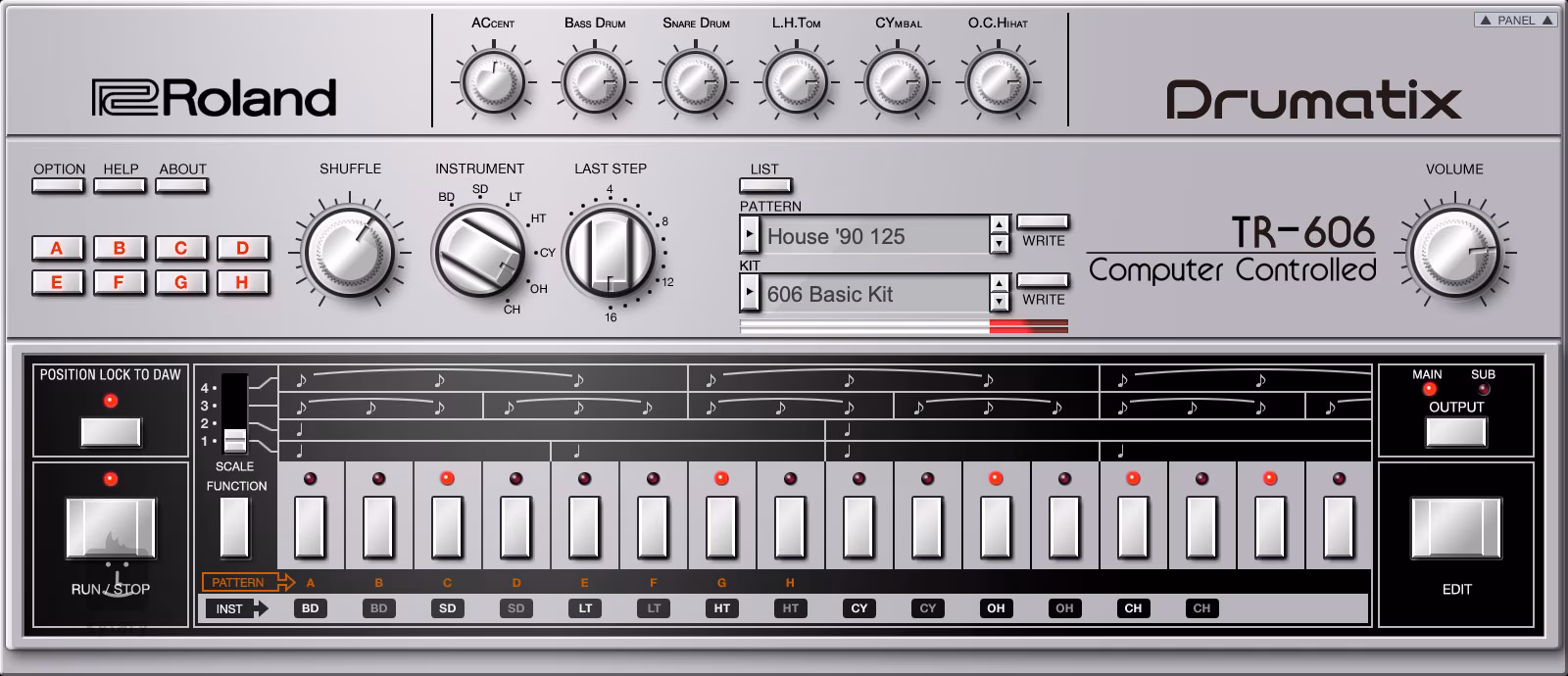 A RolandTR-606 az ikonikus 1981-es TR-606 Drumatix dobgép szoftveres változata, amely az alternatív és elektronikus zenei történelem szerves részévé vált. Ez a kompakt hangszer eredetileg a híres TB-303 ritmuspartnereként készült, de jellegzetes hangzása, hozzáférhetősége és egyszerűsége hamar helyet szerzett neki a független zenészek arzenáljában a műfajok minden területén - a post-punk-tól az acid house-ig.