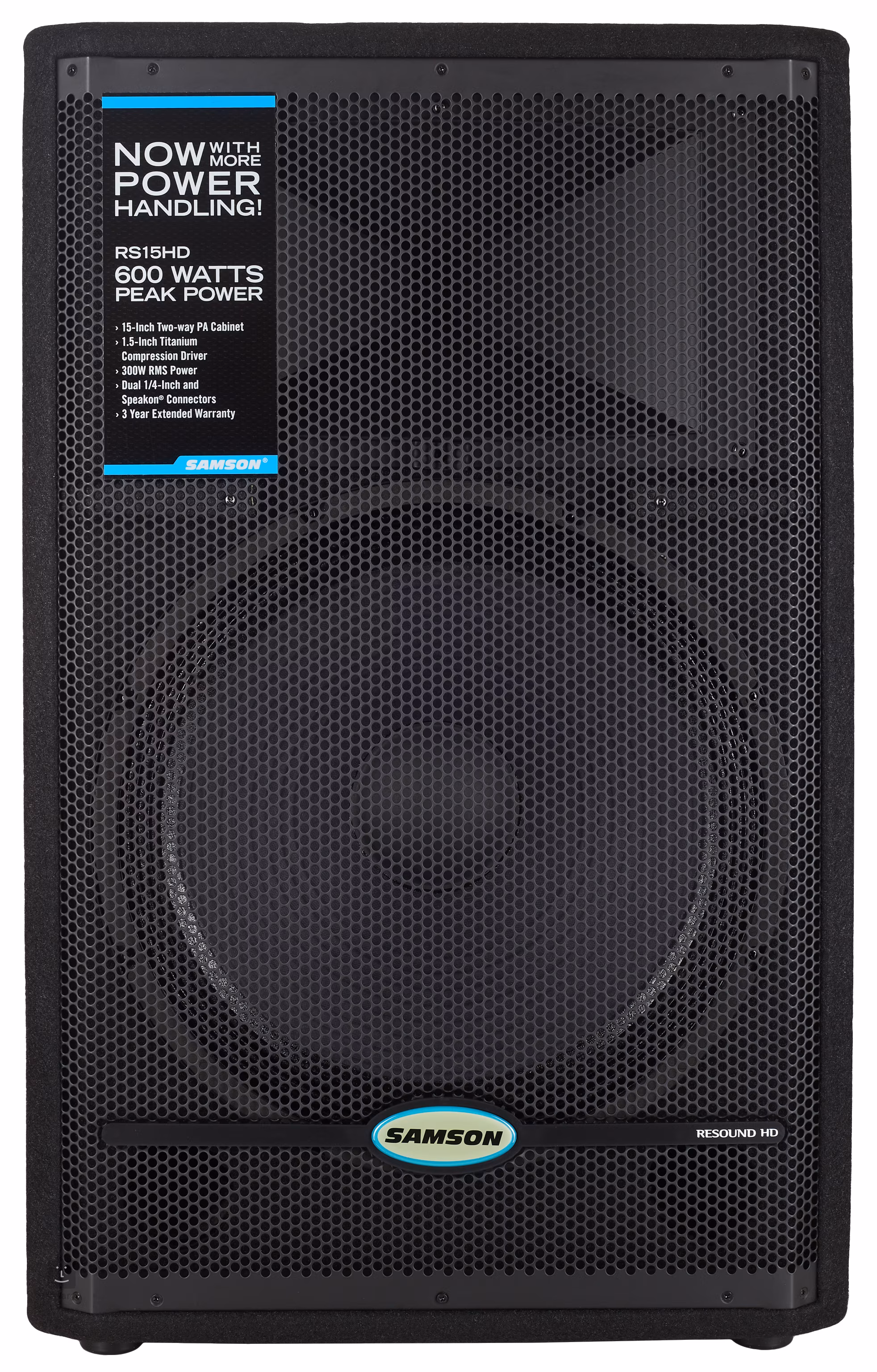 A nagy teljesítményű egyedi hangszórók a Resound HD sorozat egyik fő jellemzője. Az RS15 HD doboz egyetlen 15 hüvelykes mélysugárzóval rendelkezik, amely 600 W csúcs- és 300 W RMS teljesítményt képes nyújtani. A zökkenőmentes magasfrekvenciás reprodukcióról az 1,5 hüvelykes titánnyomású meghajtó gondoskodik. A doboz teljes impedanciája 8 Ohm.