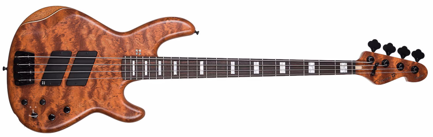 Ennek a basszusgitárnak a teste mahagóniból készült, és bubinga tetőfurnérral van ellátva. A sűrű hangzásról így gondoskodik. A fa rezgéseit egy powerhumbucker és egy splitcoil előerősítő (aktív/passzív) továbbítja az erősítő felé, háromsávos korrekciókkal. A kanadai juhar nyak öt csavarral van a testhez rögzítve, és egy huszonkét bunddal ellátott rózsafa fogólapnak ad otthont. A pozíciókat gyöngyházblokkok jelölik, a fejléc pedig színben a testhez igazodik.