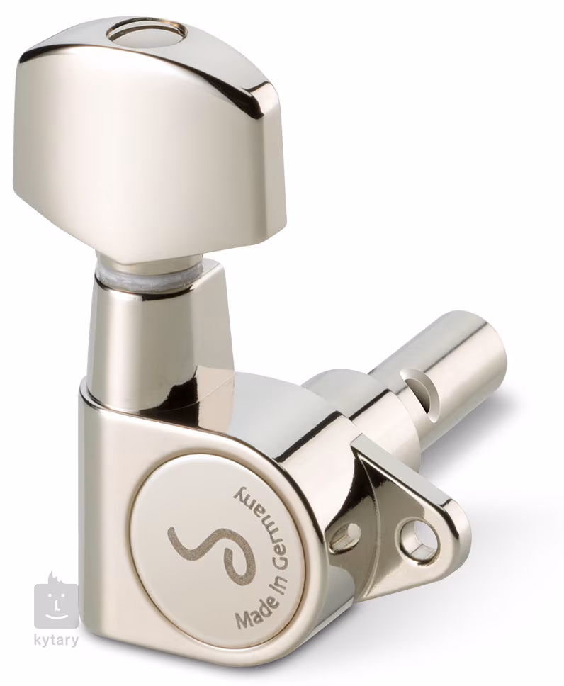 Ez a készlet egy komplett készletet tartalmaz hat hangolótűvel - három jobb és három bal hangolótűt. A húrfurat távolsága a hangolótű aljától 21,7 mm. A 18:1 áttétel kivételes hangolási pontosságot biztosít, amelyet még a legigényesebb gitárosok is értékelni fognak. Ehhez hozzájárul az is, hogy a húrrögzítő csapok kiváló minőségű sárgarézből készültek, ami szintén hosszú élettartamot biztosít. A nikkelezett kivitel hagyományos megjelenést kölcsönöz a szerkezeteknek, amely tökéletesen kiegészít minden gitárfejet. Adja hangszerének a lehető legnagyobb hangolási stabilitást a Schaller csapokkal!