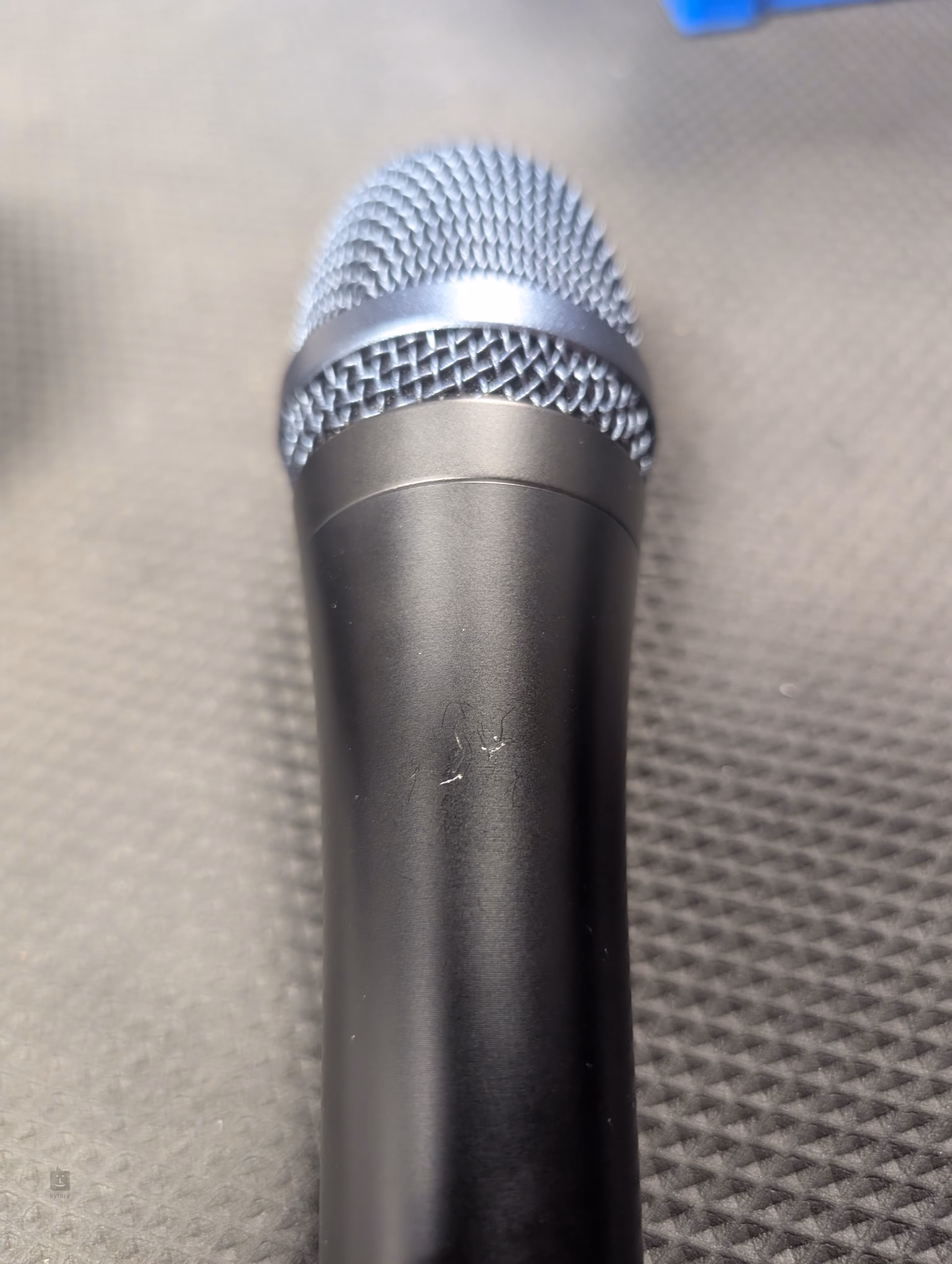 A mikrofon a boltban való kiállítás miatt kissé megkarcolódott. Egyébként teljesen rendben van és teljesen működőképes.