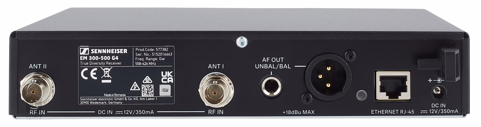 A teljesen fémből készült vevőegység megbízható jelet biztosít akár 100 m-es hatótávolsággal és intuitív LCD kijelzővel az egyszerű kezelhetőség érdekében, valamint automatikus funkciókkal az optimális átvitel konfigurálásához. A 88 MHz-es sávszélességben akár 32 csatorna és nagy adóteljesítmény áll rendelkezésre, amely akár 50 mW-os (10/30/50) lépésekben is beállítható. A beépített Ethernet-port lehetővé teszi a távvezérlést és a beállítást a Sennheiser Control Cockpit rendszerek és a WSM szoftver segítségével. Ez a készlet kompatibilis az LSP 500 PRO vezeték nélküli hangszórórendszerrel is.