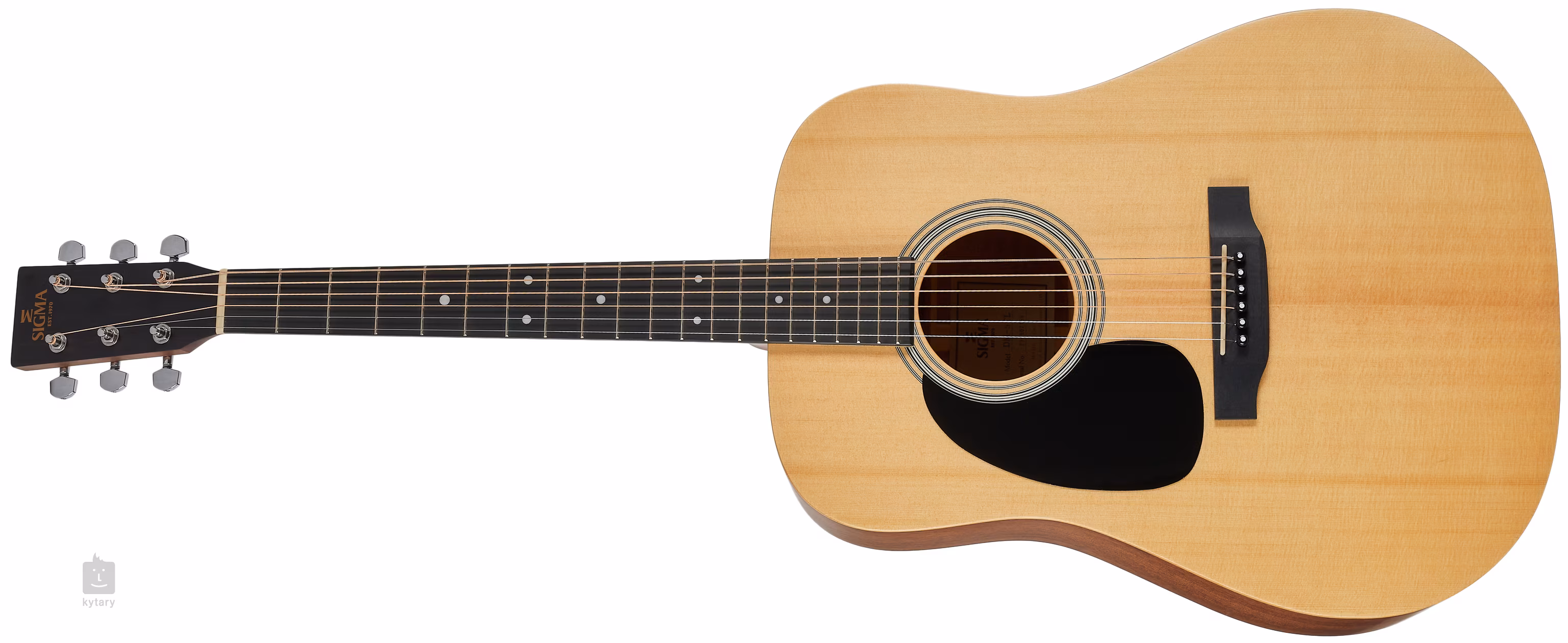 Akusztikus gitár Sigma DM-STL egy megfizethetőbb Dreadnought balkezes játékosok számára, szigorú kivitelben, jelentős tartozékok nélkül, azaz minden olyan dolog nélkül, ami nem befolyásolja a hangszer hangzását.