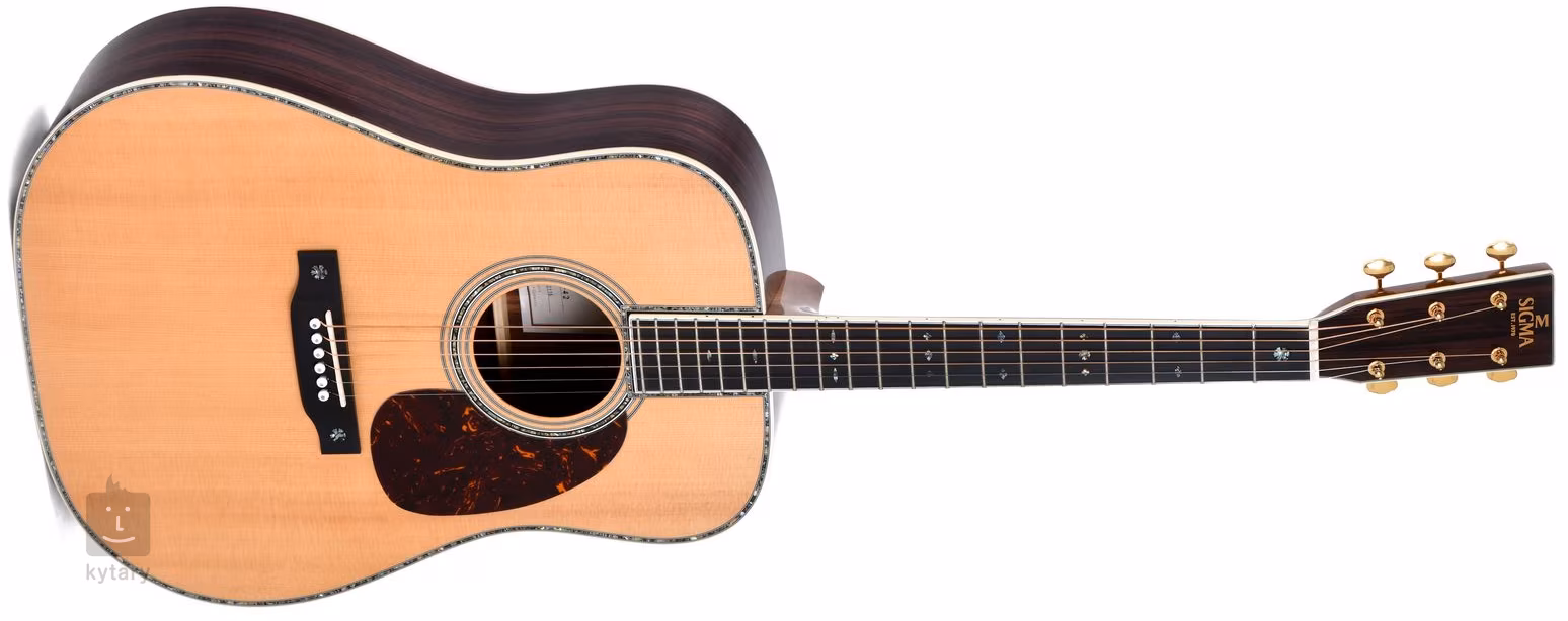 A Sigma DT-42 egy félig masszív, dreadnought típusú akusztikus gitár, amely a kivitelezés, a hangzás és a játszhatóság szempontjából magas igényű játékosoknak is tetszeni fog.