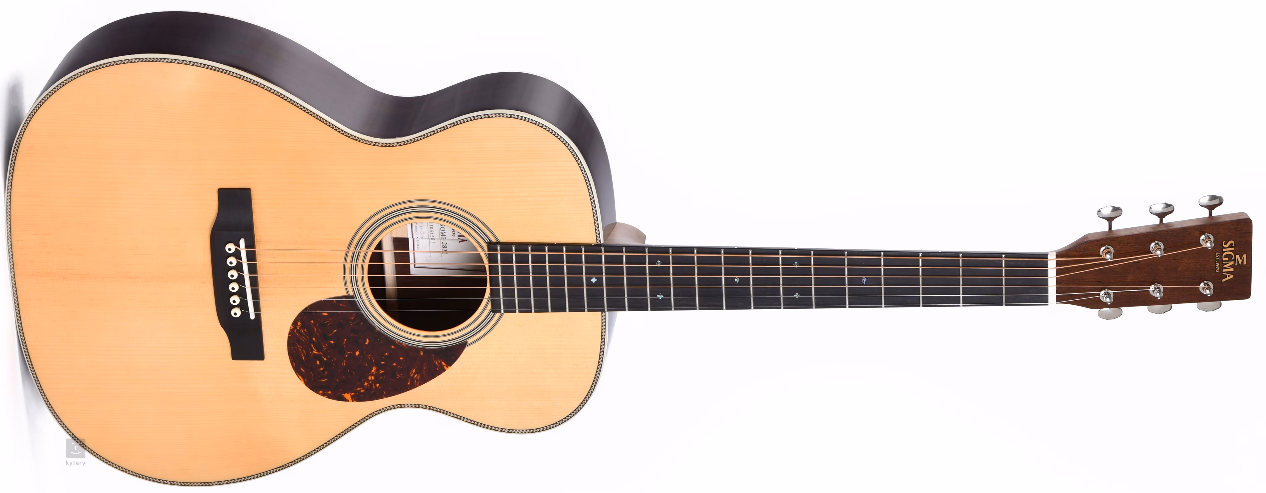 A Sigma SOMR-28M a Custom Guitars magasabb szériájából származó 000-es típusú full-masszív akusztikus gitár, amely kivitelezésével, prémium anyagaival és játékjellemzőivel bizonyára még az igazán igényes zenészeknek is tetszeni fog. A "háromhúros" kisebb mérete (a Dreadnought gitárokhoz képest) jó játékjellemzőket és kényelmet garantál még a kisebb termetű vagy testalkatú játékosok számára is.