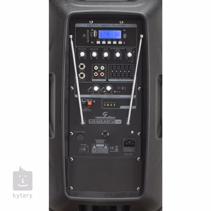 A hátsó kezelőpanelen két vonalas bemenet, sztereó RCA bemenet és kimenet, egy ötsávos grafikus equalizer, illetve egy zenelejátszó alapvető kezelőszervekkel, egy áttekinthető kijelzővel, egy SD memóriakártya-nyílással és egy USB-porttal egy pendrive számára. A hangszórót egy beépített akkumulátorral lehet táplálni, amely akár 4 órás üzemidővel rendelkezik. A teleszkópos fogantyú vagy egy pár ergonomikusan kialakított oldalsó fogantyú lehetővé teszi a kényelmes szállítást.