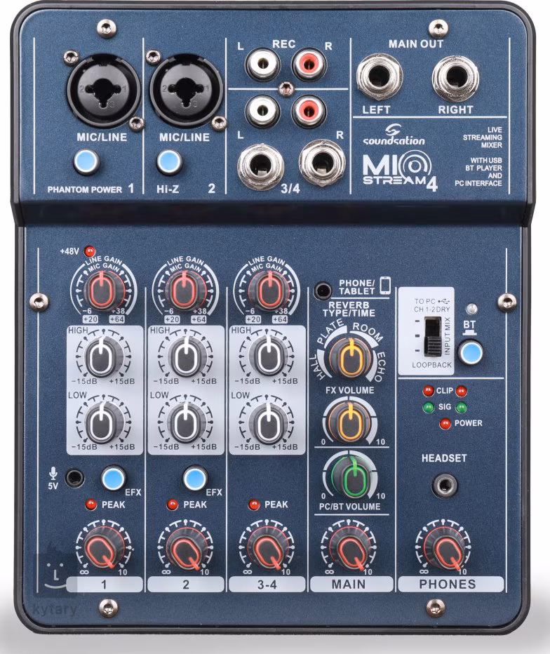 A MIOSTREAM4 mindenki számára ideális, aki egyszerű keverőt keres streameléshez OTG, USB-C és Bluetooth funkcióval, a lehető legkisebb méretben.