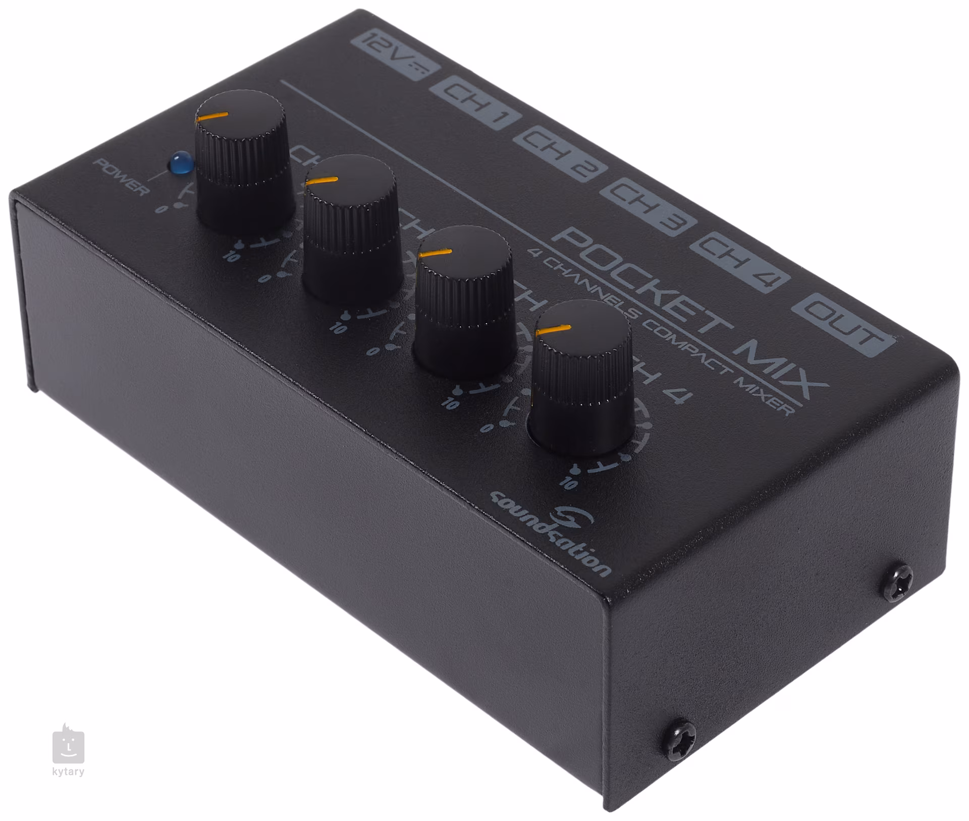 Használja a Soundsation kompakt, négycsatornás Pocket Mix keverőjét bárhol, ahol több hangsávot kell gyorsan és egyszerűen összevonnia. Minden csatorna saját hangerőszabályzóval rendelkezik. A készülék négy mono bemenettel és egy mono kimenettel (TS 6,3 mm-es jack) rendelkezik.