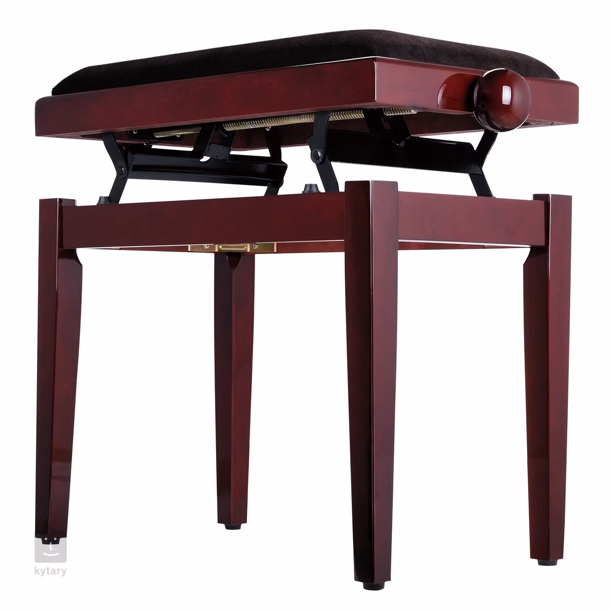 Zongoraszék klasszikus kialakítással, könnyű magasságállítással és kényelmes üléssel, fekete bársony huzattal. Az ülések fényes és matt kivitelben, valamint a leggyakoribb zongora- és nagybőgőszínekhez illeszkedő többféle színben kaphatók.