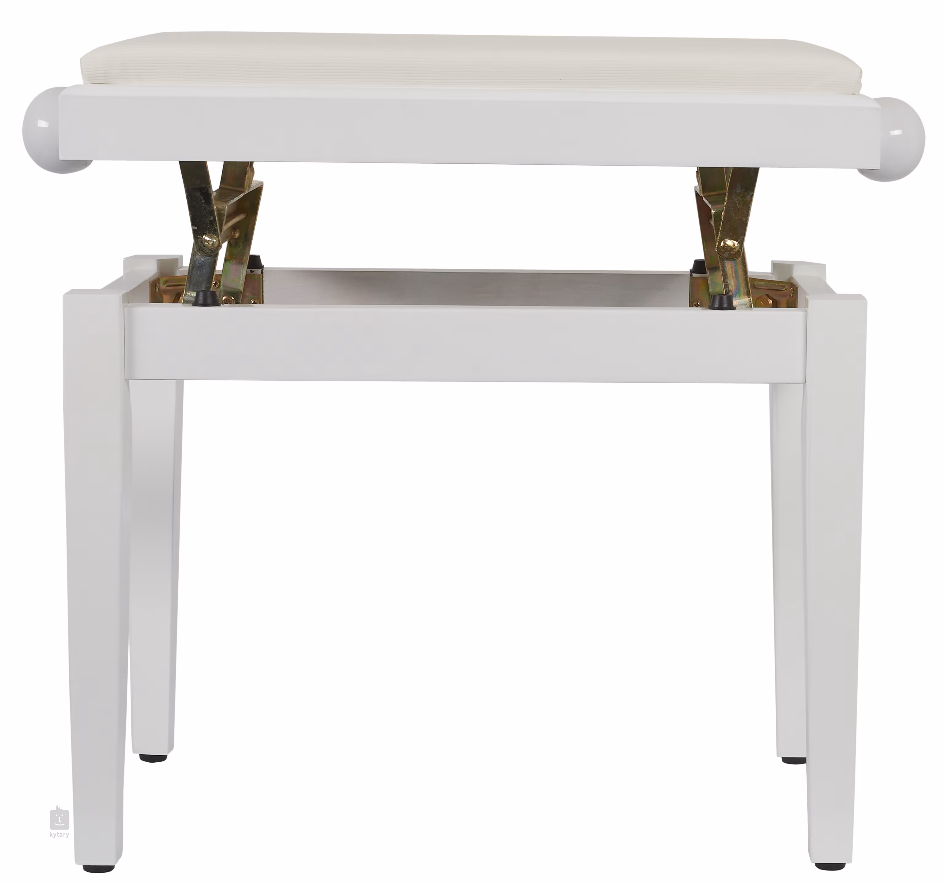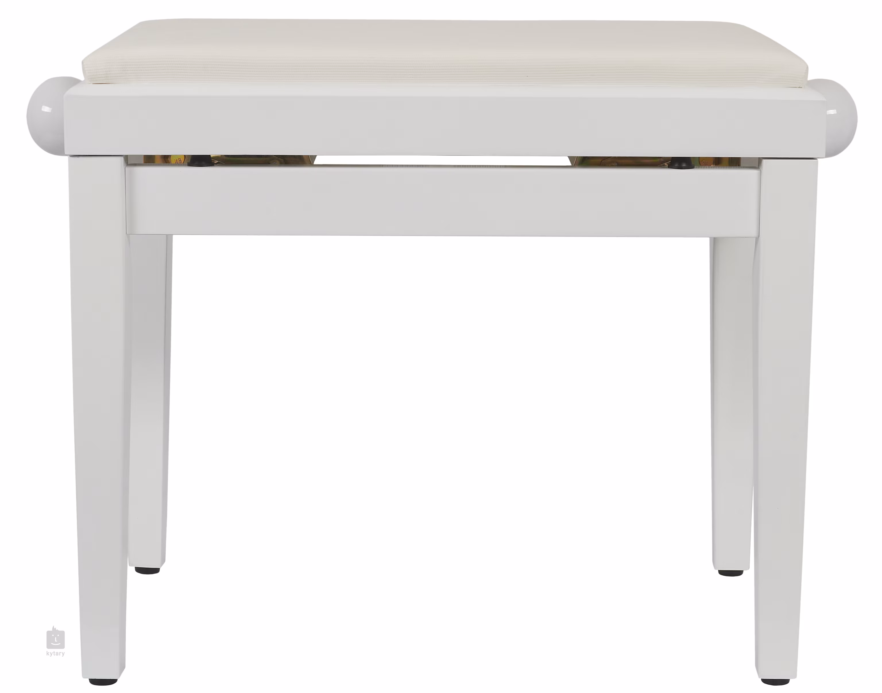 Klasszikus zongoraszék könnyű magasságállítással és kényelmes üléssel, fehér bársonyhuzattal. Az ülések fényes és matt kivitelben, valamint a leggyakoribb zongora- és pianínószínekhez illeszkedő többféle színben kaphatók.