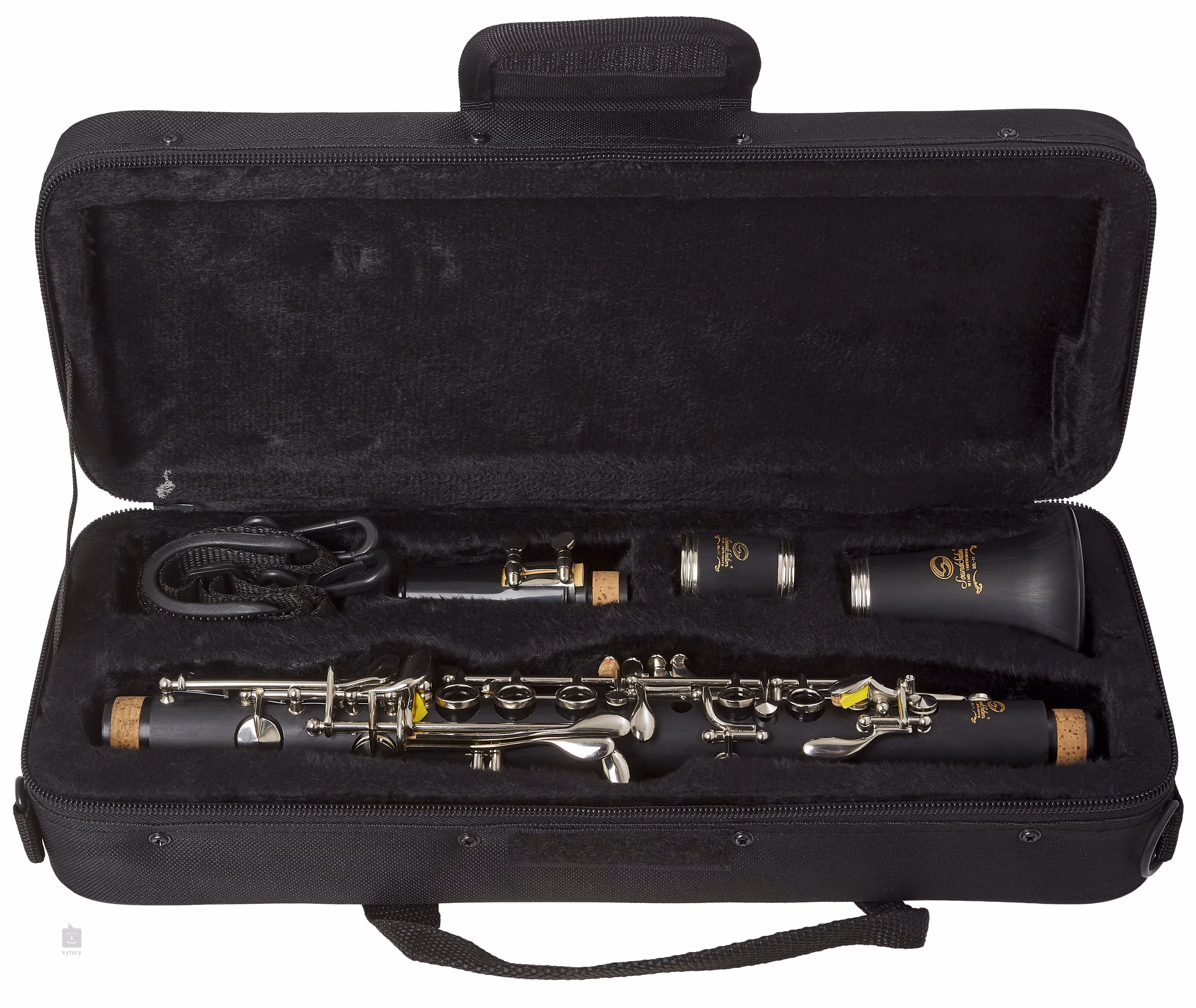 Ennek az Eb-klarinétnak a teste ebonitból készült. Tizenhét nikkelezett nyitott patenttal, hat gyűrűvel és bőrbetétekkel rendelkezik. A klarinétot egy praktikus puha tokban szállítjuk, szíjjal és külső zsebbel. A csomag tartalmaz továbbá egy szócsövet, egy ligatúrát és egy kalapot.
