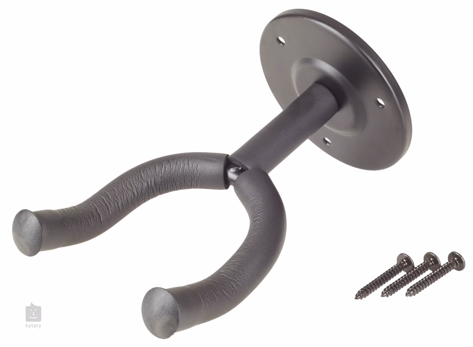 Univerzális fémállvány, amely minden típusú gitárhoz alkalmas. A villa gumírozott, hogy megakadályozza a gitár festésének sérülését. Az állvány rögzítéséhez szükséges csavarokat nem tartalmazza.