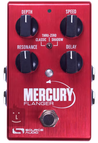 ASource AudioMercury Flanger egy kompakt sztereó pedál, amely hatalmas hangzásbeli potenciált rejt magában. Maga a doboz három különböző üzemmóddal rendelkezik, amelyek között egy egyszerű háromállású kapcsolóval lehet választani. A Classic állásban egy klasszikus, drámai flanger-effektet kapunk a legelső flanger-dobozok stílusában a 40-es és 50-es évekből. A Thru-Zero (más néven Tape Flanger) üzemmódban a flangert analóg módon, két mágnesszalaggal létrehozott flangerek összetéveszthetetlen vintage hangzását kapod. Végül ott van a Shadow, amely egy erősen rezonáns, bársonyosan sima flangert eredményez. Egy egyszerű, négy potenciométerrel ellátott vezérlőpanel lehetővé teszi a hangzás tetszés szerinti beállítását.