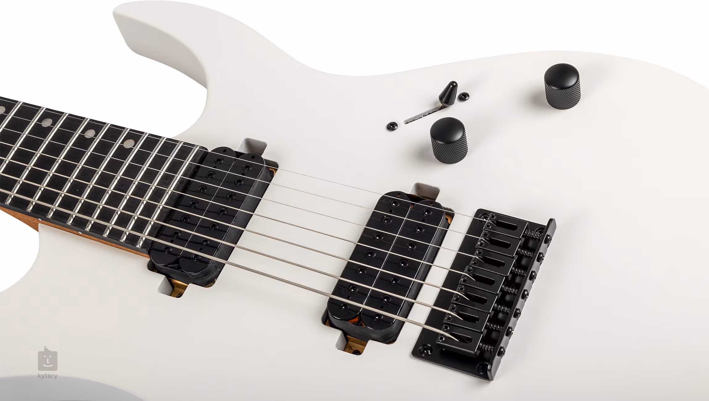 A két Spira Villain saját fejlesztésű humbucker kerámia mágnessel és erősebb kimenettel lédús hangzást biztosít a gitárnak, amelyet különösen a high-gain beállításoknál fogsz értékelni. A hangbeállítások a szokásos gombokkal manipulálhatók. A húrok a cég zárszerkezetében és egy masszív hídon keresztül a testen keresztül vannak rögzítve. A stílusos kivitelezést a matt lakk és a fekete hardverek hangsúlyozzák.