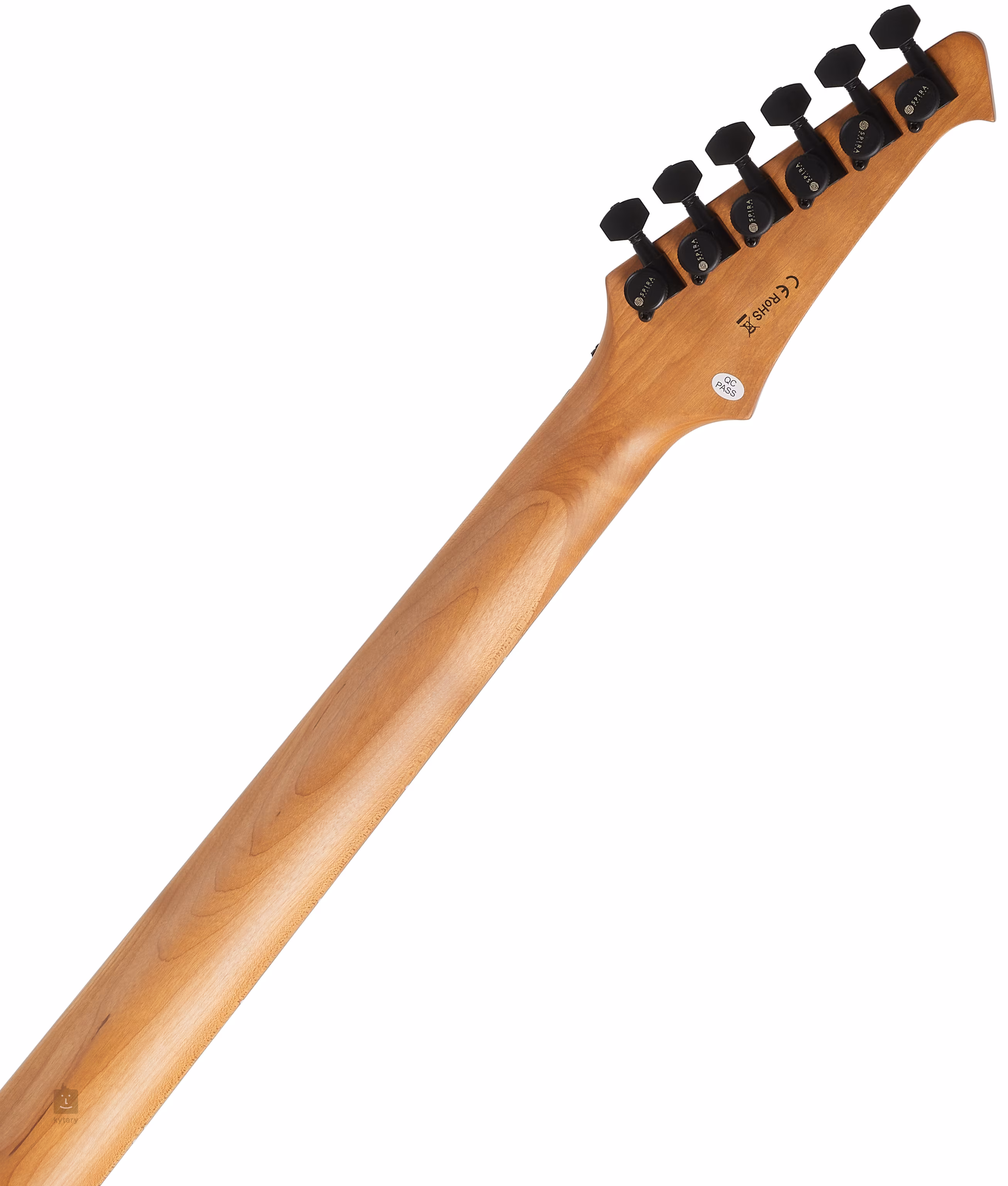 A két saját fejlesztésű Spira Villain humbucker kerámia mágnessel és erősebb kimenettel szaftos hangzást biztosít a gitárnak, amelyet különösen a high-gain beállításoknál fogsz értékelni. A hangbeállítások a szokásos gombokkal manipulálhatók. A húrokat a cég hangológépeibe, valamint egy masszív farokrészbe és truss rodba szerelték. A stílusos kivitelezést a matt lakk és a fekete hardverek hangsúlyozzák.