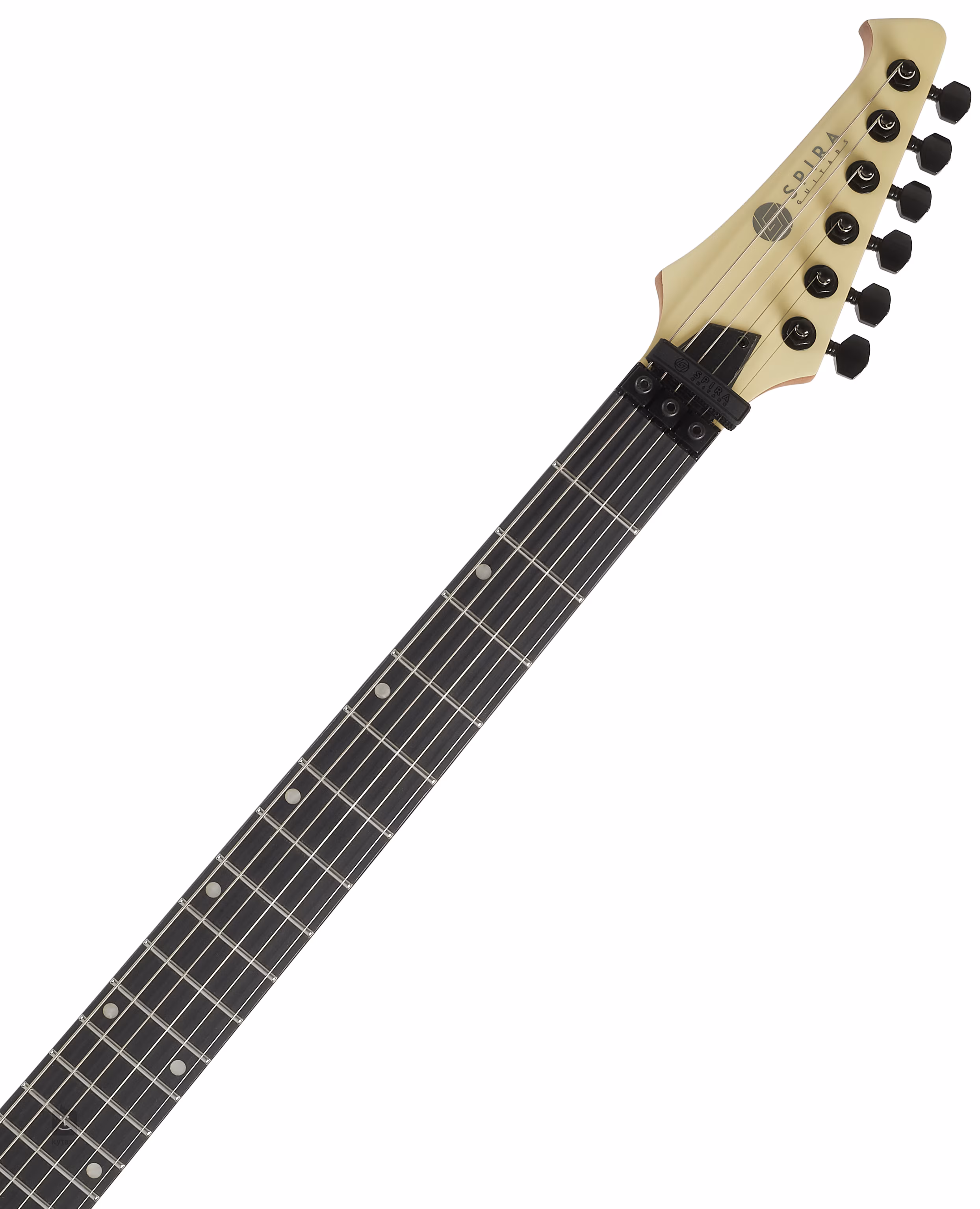 A két saját fejlesztésű Spira Villain humbucker kerámia mágnessel és erősebb kimenettel szaftos hangzást biztosít a gitárnak, amelyet különösen a high-gain beállításoknál fogsz értékelni. A hangbeállítások a szokásos gombokkal manipulálhatók. A húrokat a cég zárható hangolókészülékeibe és a koreai Sung-il tremolóba szerelték. A stílusos kivitelezést a fekete hardverek hangsúlyozzák.