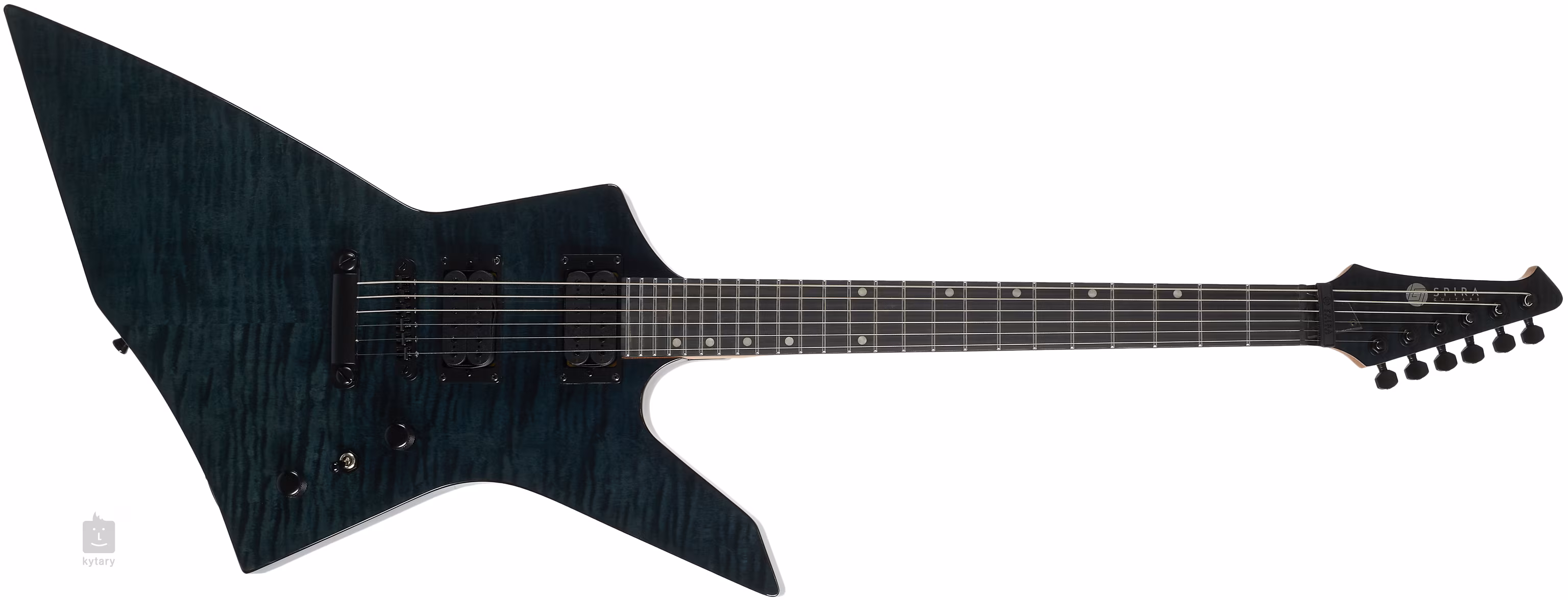 A két saját fejlesztésű Spira Villain humbucker kerámia mágnessel és erősebb kimenettel lédús hangzást biztosít a gitárnak, amelyet különösen nagy erősítésű beállításoknál fogsz értékelni. A hangbeállítások a szokásos gombokkal manipulálhatók. A húrokat a cég zárható hangolókészülékeibe, valamint egy masszív farokrészbe és truss rodba szerelték. A stílusos kivitelezést a fekete hardverek hangsúlyozzák.