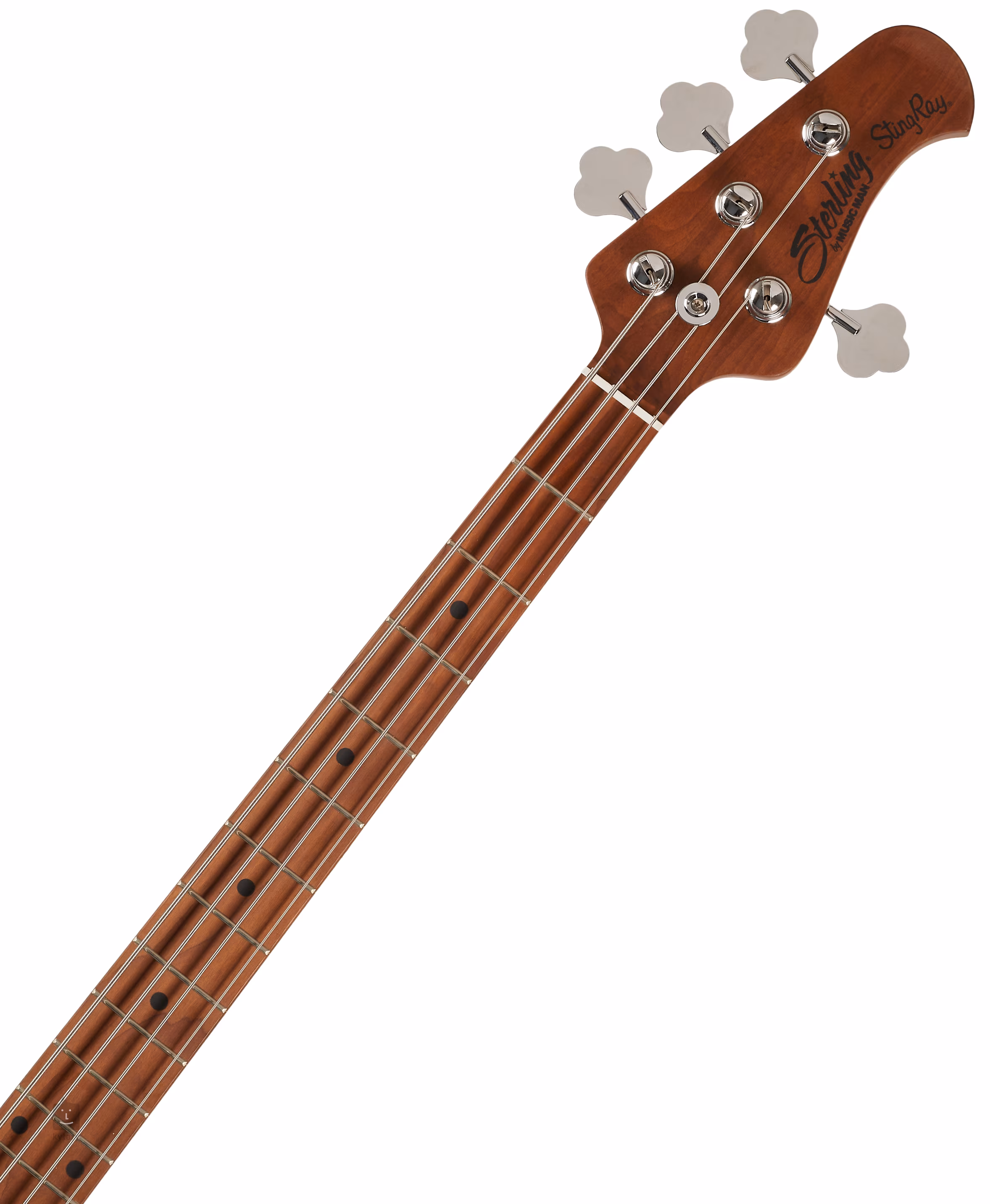 A másik oldalon a húrok egy krómozott vintage Music Man Designed edzett acél fejlécben horgonyoznak. Természetesen a gitár állítható nyakmerevítővel rendelkezik, amellyel a húrok vagy egyéb hardverek eltávolítása nélkül lehet dolgozni.