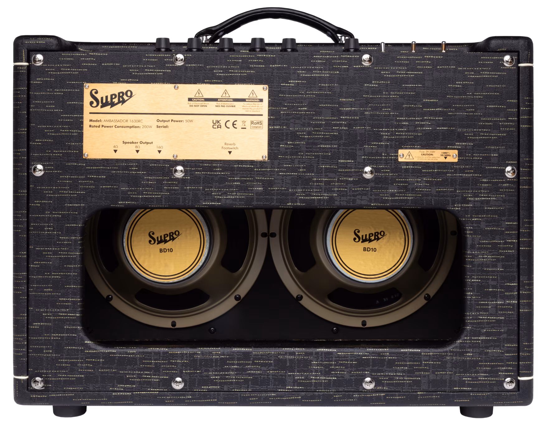 A Supro Ambassador Custom egycsatornás, teljes egészében csöves kombo, 50 watt teljesítménnyel és retro, Valco-ihlette dizájnnal a múlt század közepéről. Ez egy gitárkombo, amelyet kézzel gyártanak az USA-ban prémium alkatrészekből (Mercury Magnetics transzformátorok, Mallory kondenzátorok, párosított EHX elektroncsövek, elektroncsővel működtetett rugós reverb és egy pár BD10 Supro by Celestion hangszóró).