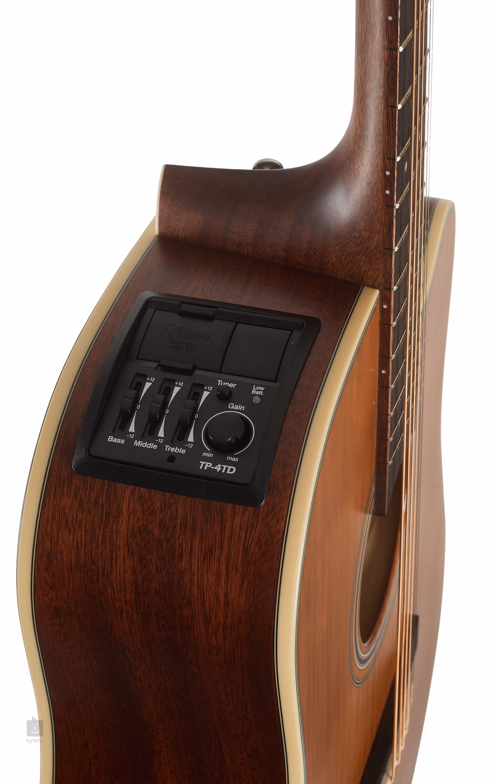 Könnyű hangolási lehetőségeket kínál a Takamine elektronika beépített hangolóval, háromsávos EQ-val és Gain szabályzóval.