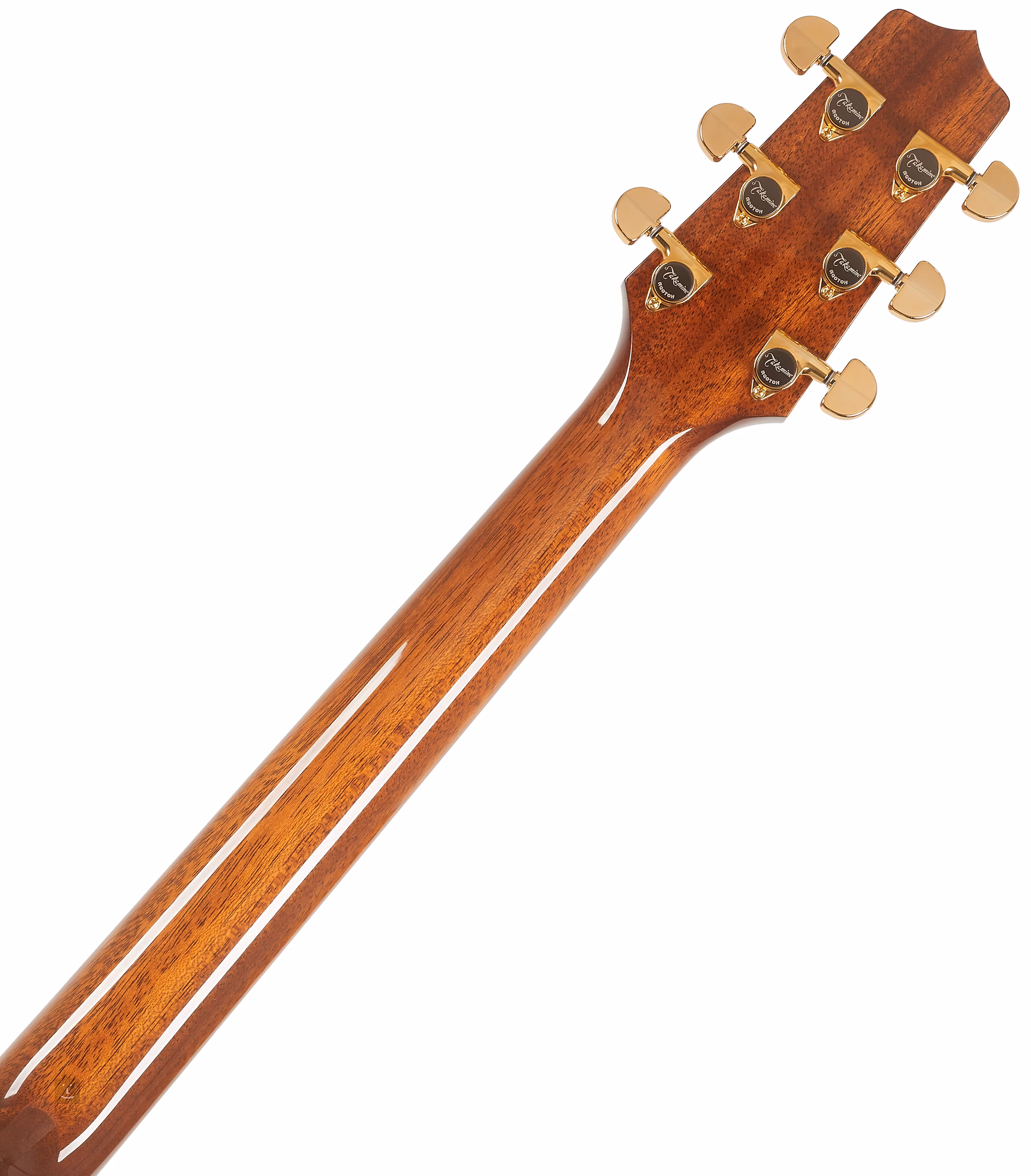 A húrokat a hangológépek a csont fogólapon és nyergén keresztül tartják, fényűző arany kivitelben és rózsafa fogólapon. A Split Saddle, egy osztott kompenzált nyeregbund, pontos intonációt biztosít a gitárnak. A gitár kifinomult megjelenését kiemeli az elefántcsont imitált peremkötés, amelyet kiegészít a fa koptató, a fából és gyöngyházgyűrűkből álló rozetta, a középső hátlapi koptató, a fogólapon található gyöngyház pozíciós pontok (abalone) és a cég logójával díszített rózsafa furnér a fejlécen.