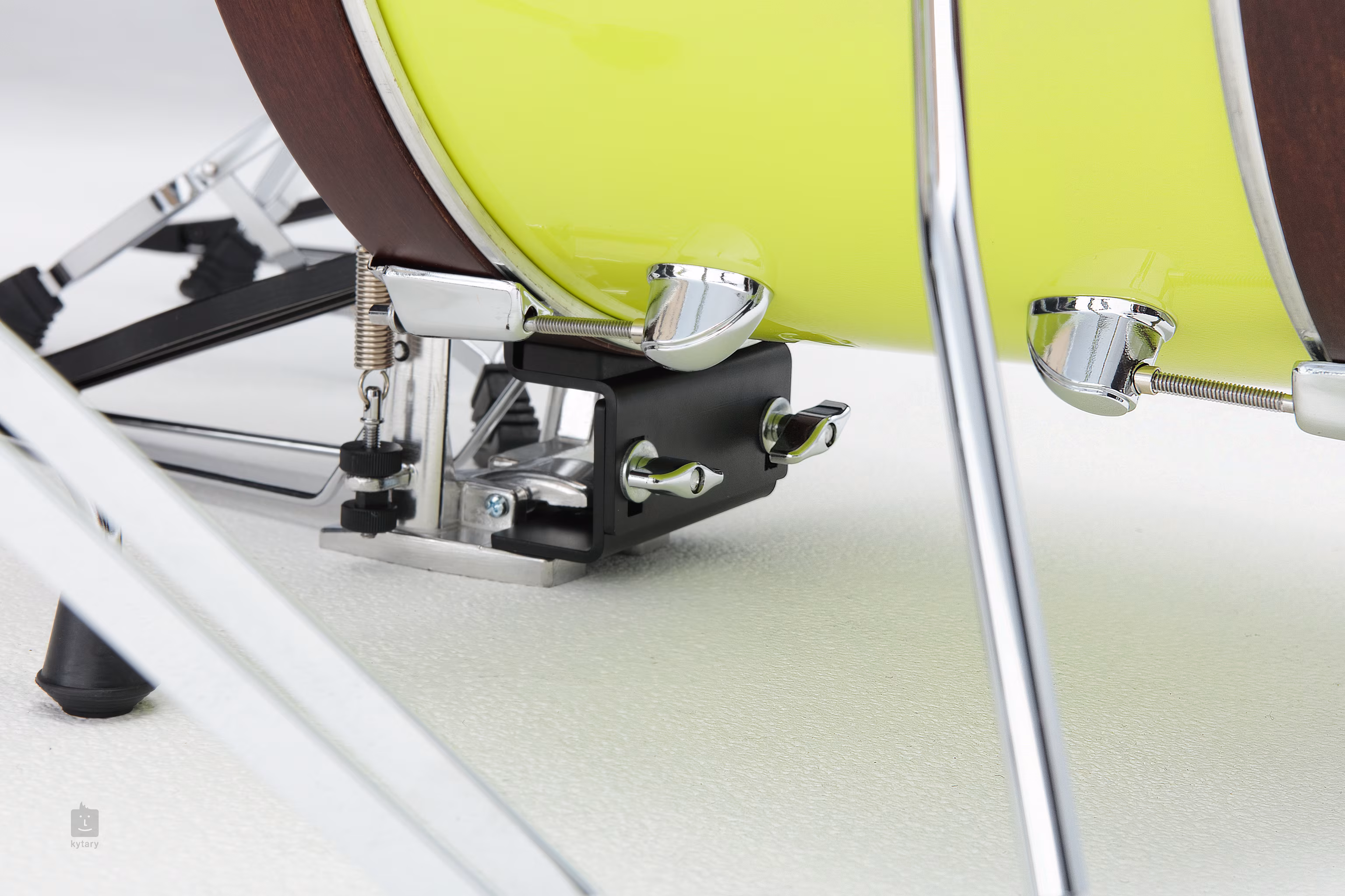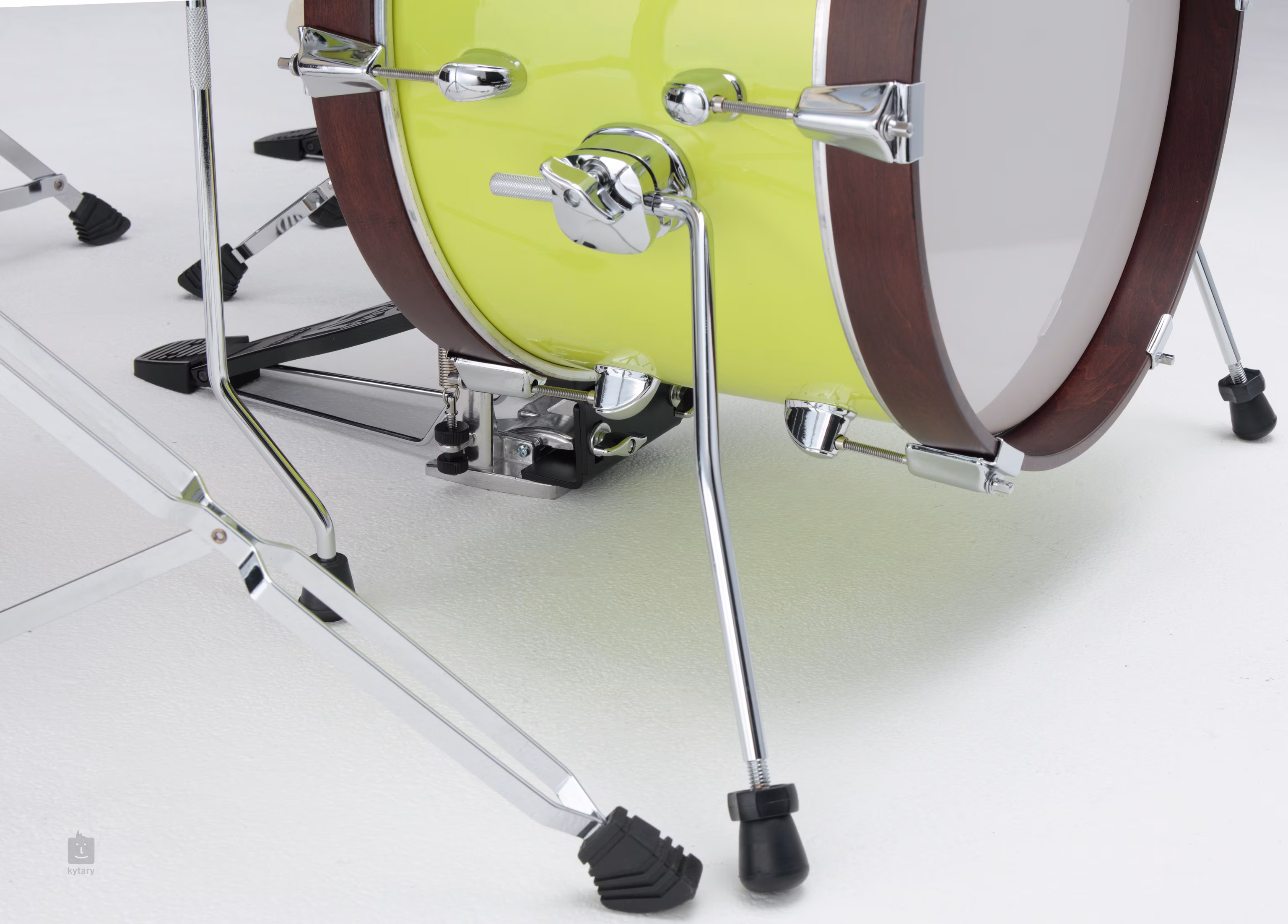 A vintage jelleget olyan praktikus részletek hangsúlyozzák, mint a közvetlenül a nagydobhoz rögzített cintányértartó vagy a nagydob hajlított lábai, amelyek stabilitást és egyedi megjelenést biztosítanak. A krómozott hardver ellenállóságot és professzionális megjelenést kölcsönöz a szettnek, míg a laminált felület könnyű karbantartást és hosszú élettartamot biztosít.