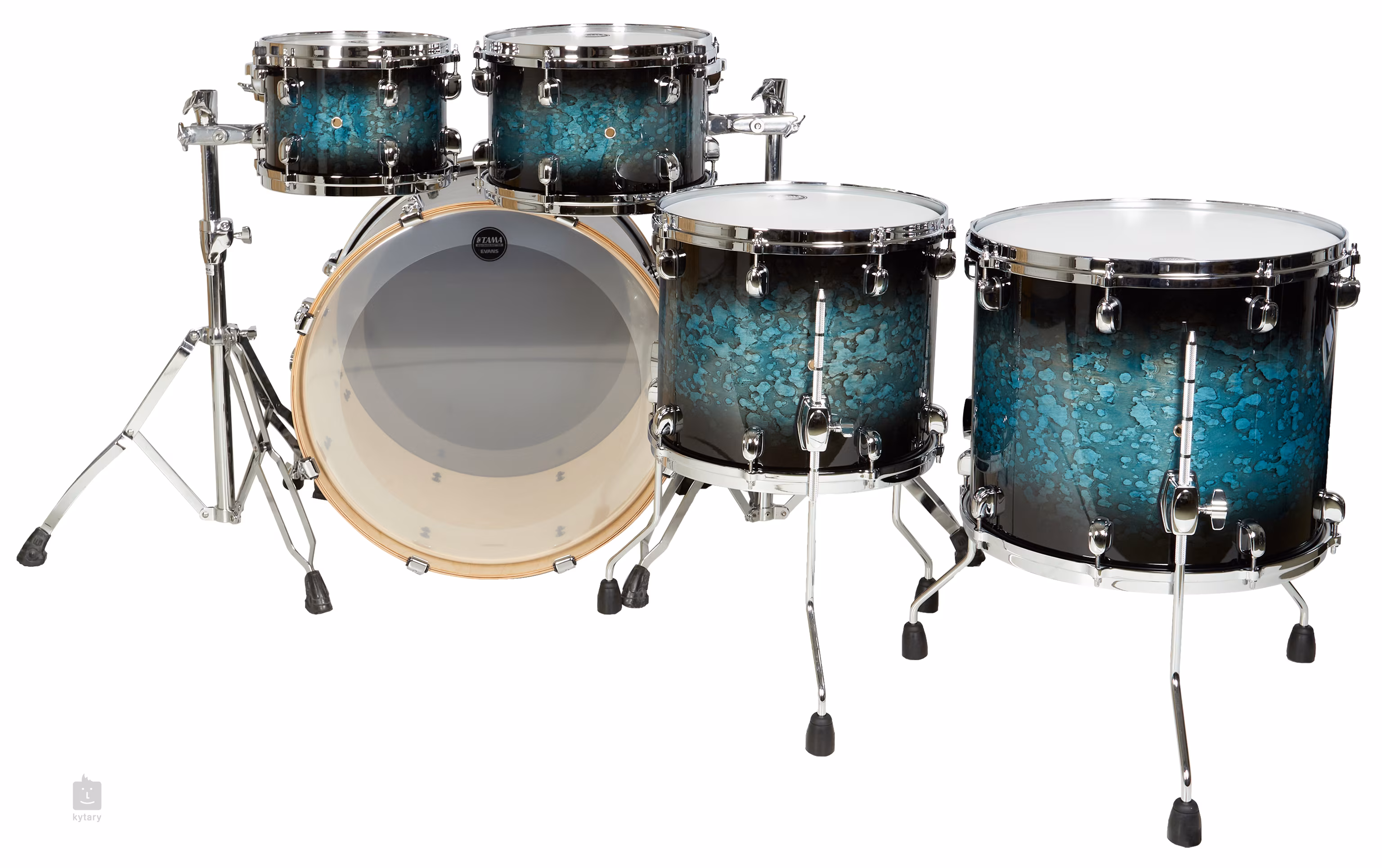A csomag a Star-Cast sorozat hardvereit is tartalmazza, amelyek stabilitásukról és nagy rezonanciájukról híresek. Az új kialakítás azt is lehetővé teszi, hogy a tompok közelebb kerüljenek egymáshoz, ami még kényelmesebbé teszi a játékot. A dobokon Evans és Tama membránokat találsz - konkrétan Evans G1 bevonatos és Tama clear Power Craft II a tamokon, vagy Evans clear EQ4 a nagydobon.