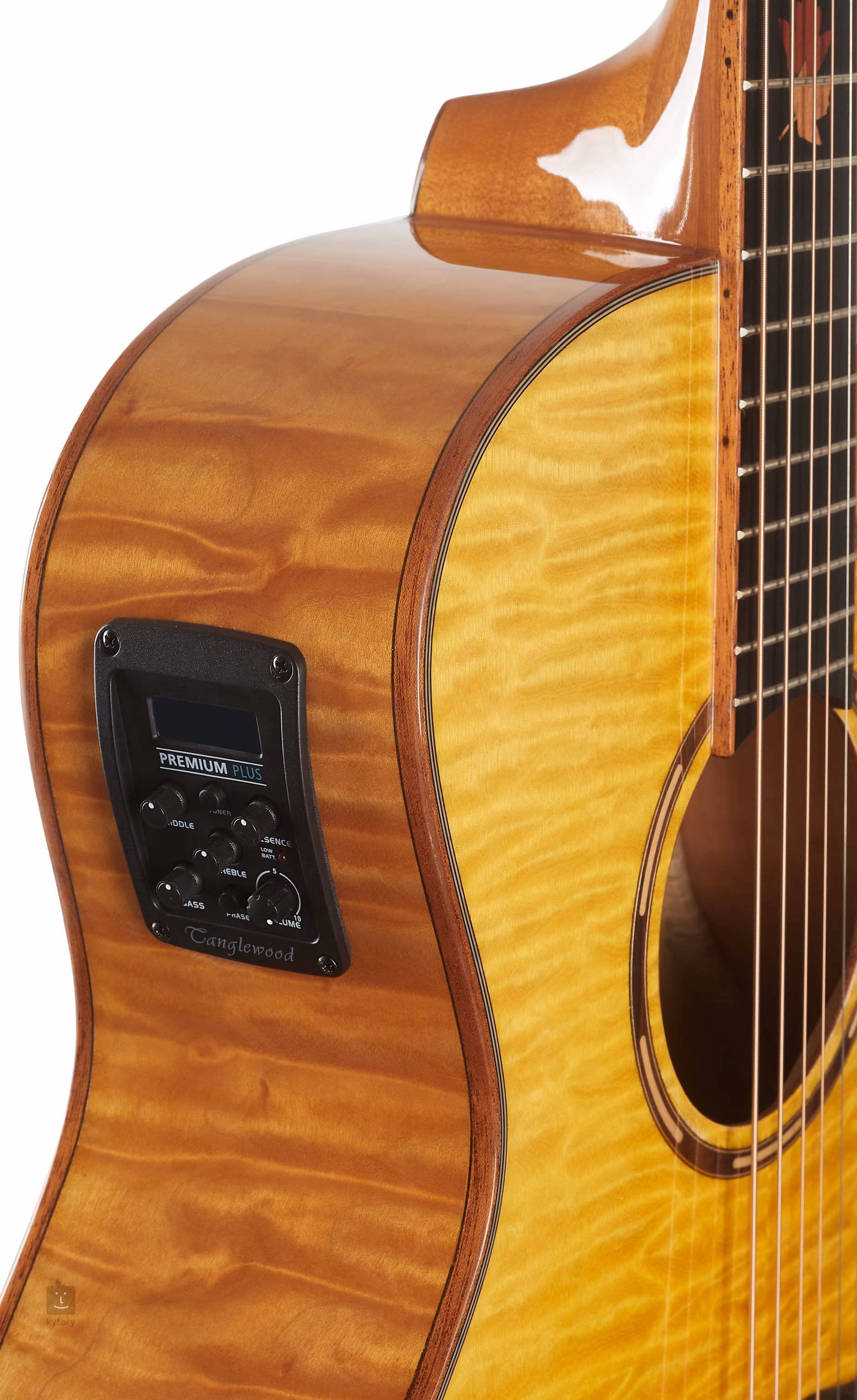 A hangzásról a TW Premium Plus előerősítő gondoskodik, amely négy sávos ekvalizerrel, Phase funkcióval és beépített hangolóval rendelkezik. A húrok Grover márkájú krómozott mechanikákban és kompozit húrtartóban vannak rögzítve. A szép kivitelezést hangsúlyozza a praktikus mahagóni karfa, a test, a fogólap és a fej mahagóni szegélye, a 12. fekvésnél található markáns berakás és a fej spalt juhar furnérja, amelyet a cég logója díszít.