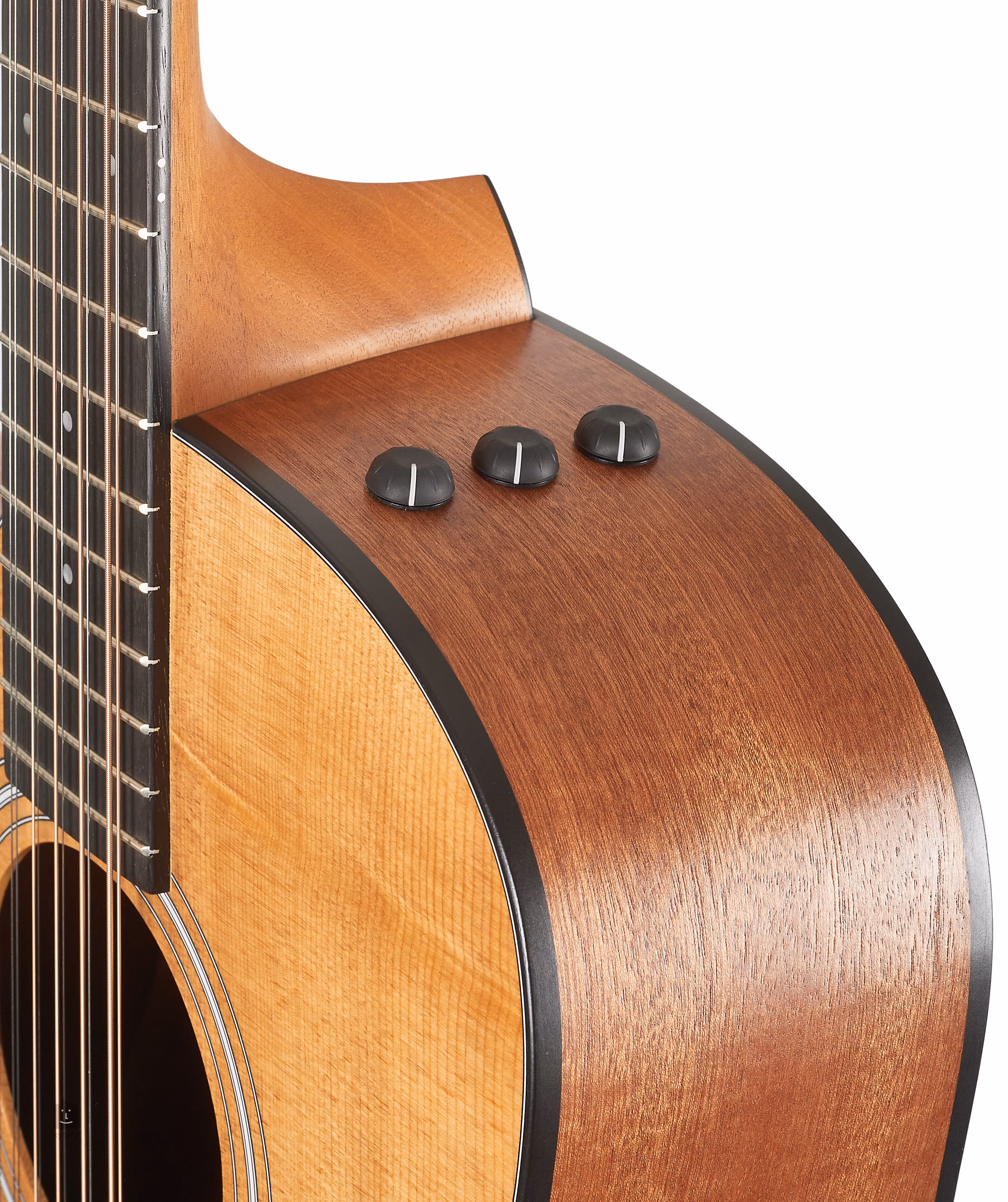 A mahagóni nyak húsz bunddal ellátott ébenfa fogólapra van ragasztva. A húrokat krómozott, öntött Taylor-mechanizmusok és egy ébenfa fogólap tartja egy micarta nyergén és egy TusQ nulladik bundon keresztül. A stílusos kivitelezést a fekete peremkötés és a fekete pickguard hangsúlyozza.