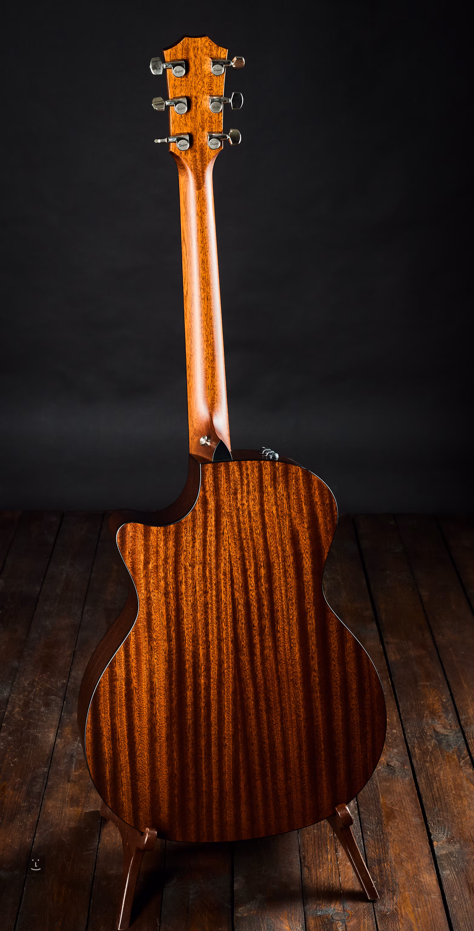 A hangszer a szabadalmaztatott V-Class bordázattal van ellátva. A fedőlap masszív Sitka fenyőből készült, a hátsó lap és az oldalak masszív sapeléből. A mahagóni nyakon ébenfa fogólap található, díszes pozíciójelölésekkel. Az alsó testkivágás (venetian cutaway) jó fogást biztosít a magasabb pozíciókban is. A gitár eredeti Taylor Expression System 2 elektronikával van felszerelve, amely 3 független piezoelektromos érzékelőt használ, amelyek a húrtartó mögött helyezkednek el.