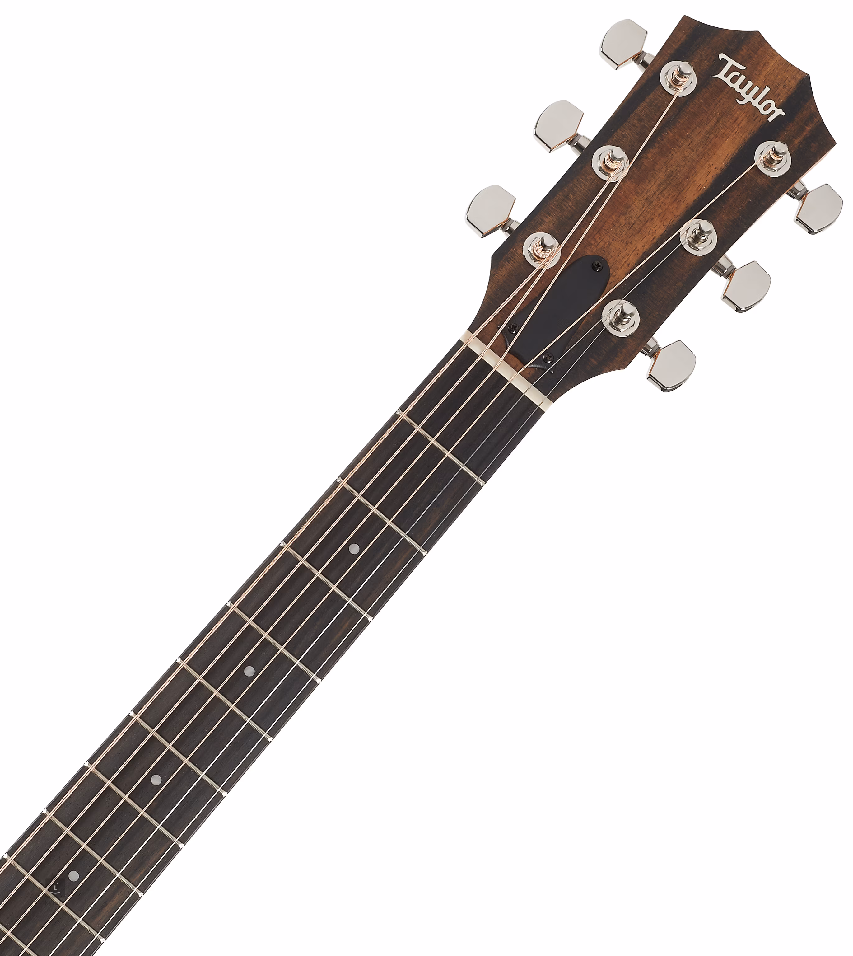 A mahagóni nyak húsz bunddal ellátott ébenfa fogólapra van ragasztva. A hangolás stabilitását az ébenfa fejlécben található NuBone nulla bundos húrfelerősítés és a Taylor nikkel mechanika garantálja. A hangszer stílusos megjelenését a tető sunburst fényezése és a hagyományos elemek hangsúlyozzák a fekete pickguard, a fekete testkötés, a gyöngyház utánzatú gyöngyház rozetták és a gyöngyház utánzatú fogólapon található pozíciós pontok formájában.
