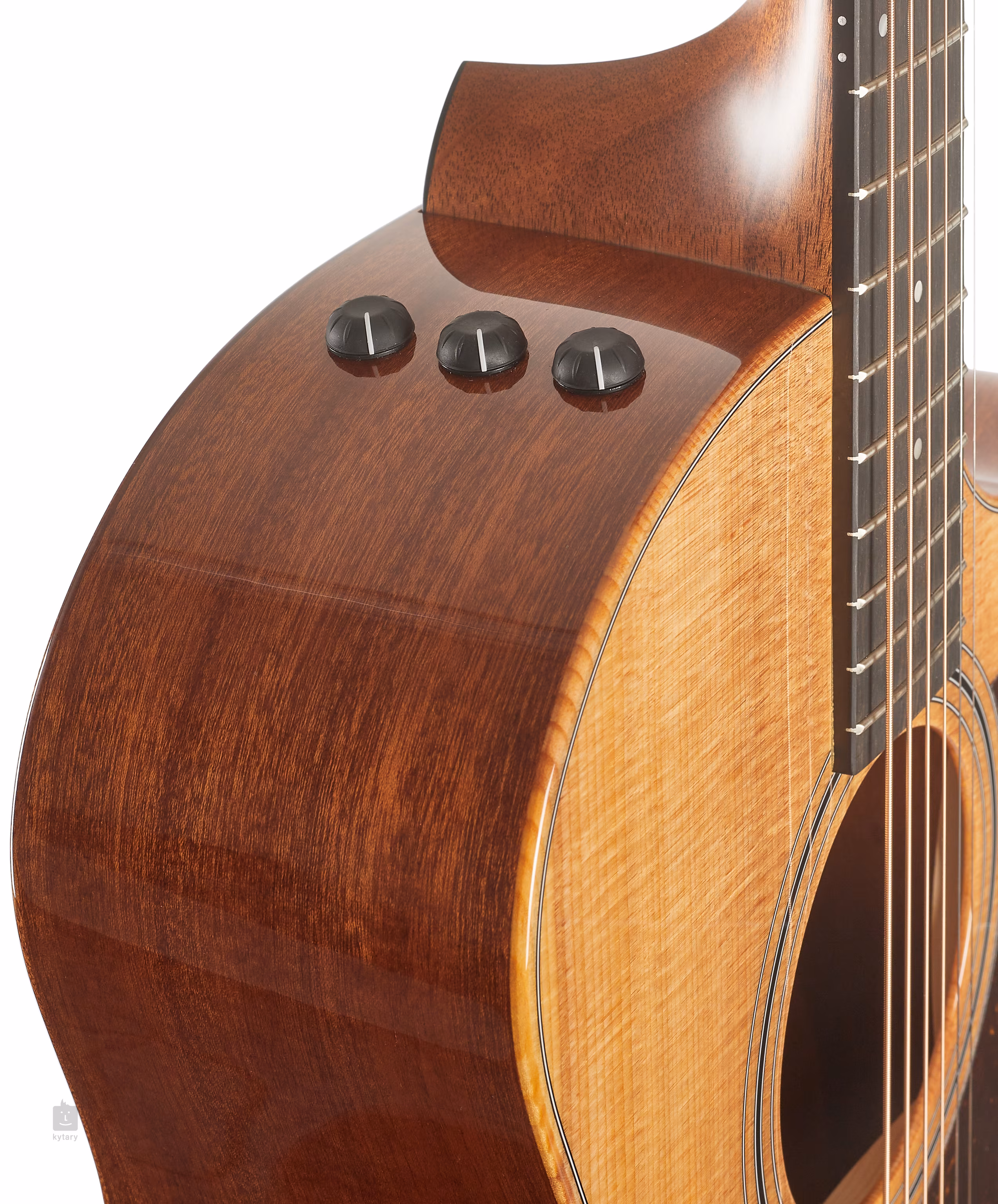 A gitár kiváló minőségű céges elektronikával van felszerelve. A Taylor Expression System 2 három speciálisan tervezett és egyedileg kalibrált piezo hangszedőt használ, amelyek a fogólap mögött helyezkednek el. A hagyományos hangszedőkkel ellentétben ezek nem a deszka fel-le mozgását érzékelik, hanem a fogólap természetes előre-hátra rezgését. Ezáltal a hangzás sokkal természetesebb, színesebb és kellemesebb, és jobban reagál a játék dinamikájára. Ugyanakkor az új előerősítő 25%-kal erősebbé teszi a jelet. Természetesen megszűnt a visszacsatolás, és a hangerőt, a basszust és a magasságot is beállíthatod.