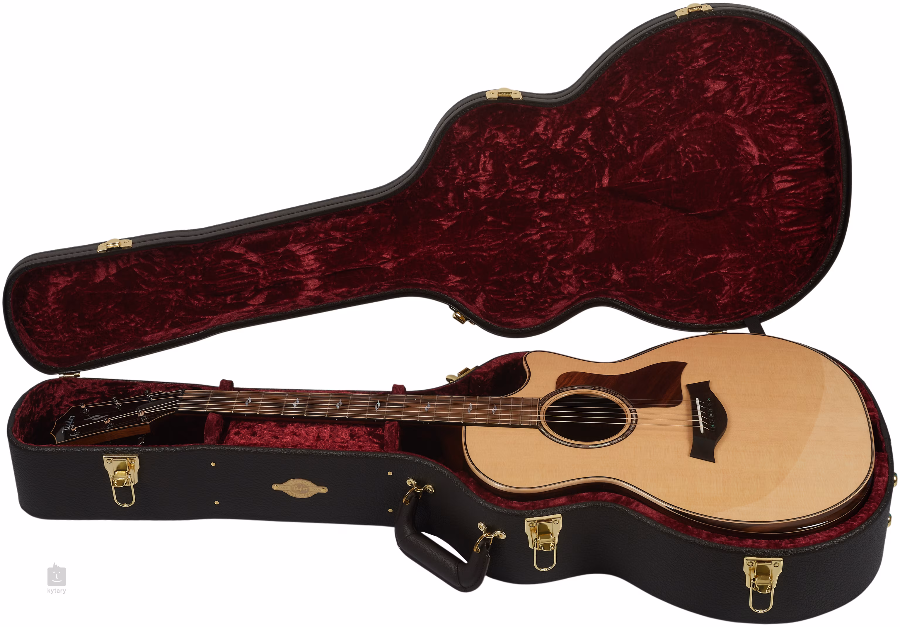 A stílusos kivitelezést hangsúlyozza a juharfa szegély, paliszander betéttel, az abalone és paliszander gyűrűkből álló rozetta, a paliszander pickguard, a díszes gyöngyház pozíciójelölők (Mother of Pearl), ébenfa húrtartócsapok gyöngyház pontokkal és ébenfa furnér a gitár fején, gyöngyház (Mother of Pearl) Taylor logóval díszítve.