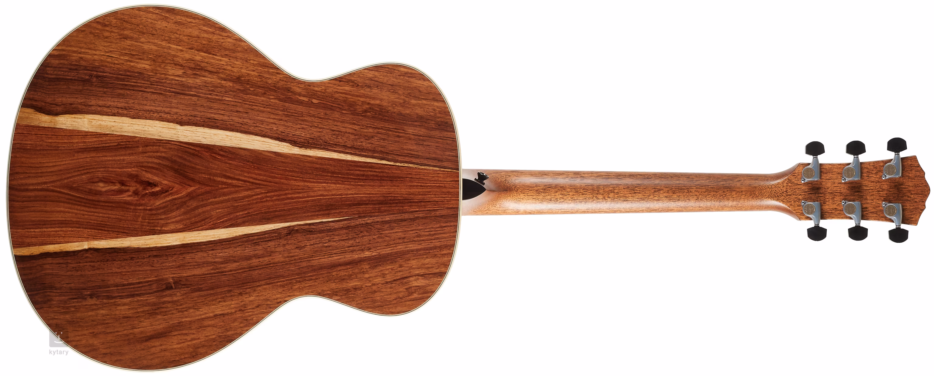 A mahagóni nyak húsz bunddal ellátott ébenfa fogólapra van ragasztva. A hangolás stabilitását a húrok hondurai rózsafa fogólapba való rögzítése és a csúcsminőségű Gotoh 510 Antique Chrome akció biztosítja ébenfa fogólapokkal. A fényűző kézművesmunkát a történelmi bendzsó- és mandolin-designokból, régebbi Taylor-modellekből és azokból a lúgos gitárokból vett díszítőelemek emelik ki, amelyeken a Taylor vezető gitárosa, Andy Powers dolgozott, mielőtt csatlakozott a céghez. Konkrétan gyöngyház pozíciójelzők a fogólapon és a fejlécen (gyöngyház "Continental"), elefántcsont utánzatú test és hanglyuk körítés, hondurasi paliszander teteje és fekete vonalak, gyöngyház rozetta (Paua) hondurasi paliszander gyűrűkkel, elefántcsont utánzatú és fekete vonalakkal, valamint a "Continental" motívummal gravírozott teknősbőr utánzatú koptató.