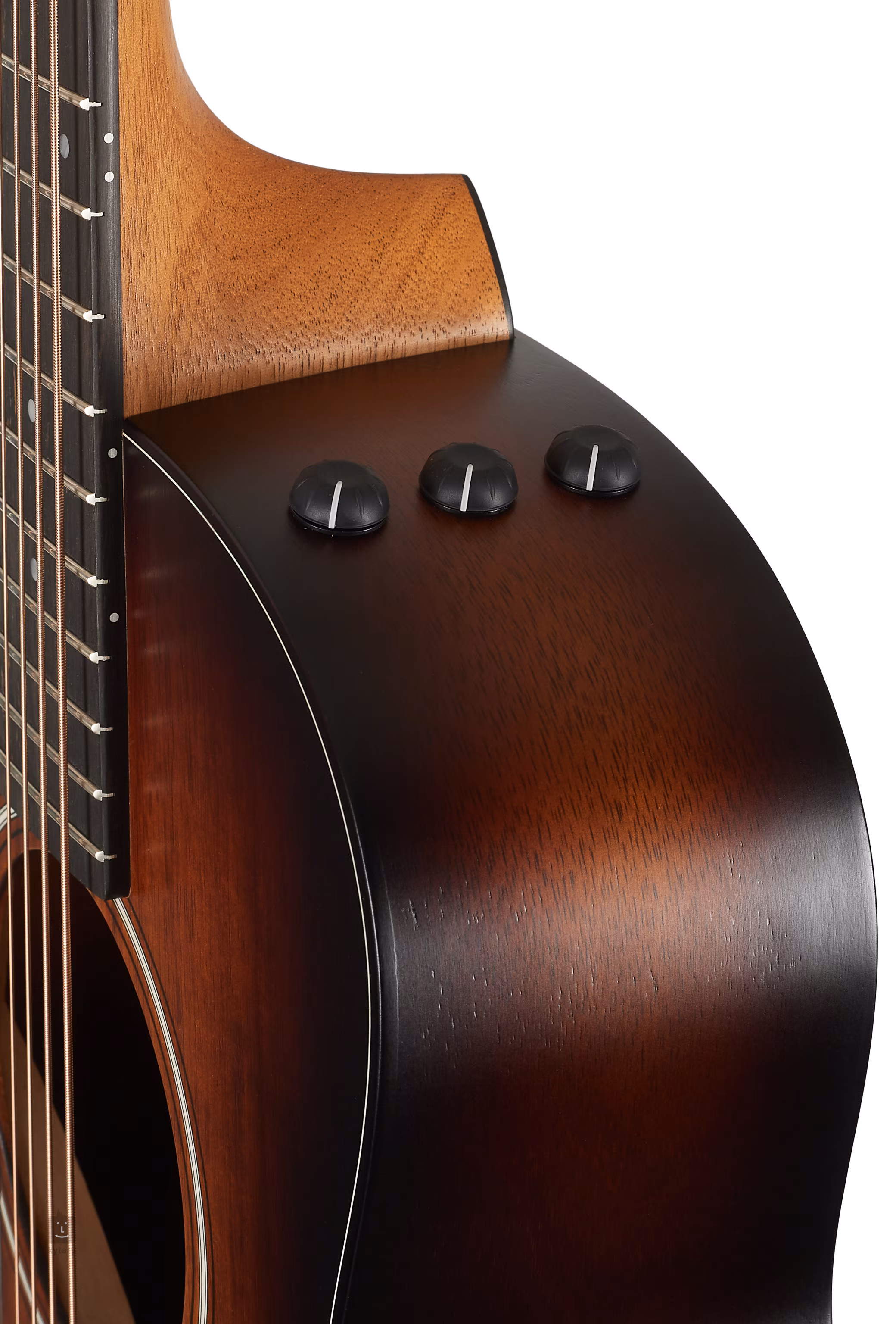 A GS Mini-e Koa Plus elektro-akusztikus gitár teste hawaii koából készült - tömör fa előlap, laminált koa hátlap és oldalak. A már amúgy is gyönyörű faanyagot a Shaded Edgeburst kivitel még jobban kiemeli. A mahagóni nyakhoz egy ébenfa fogólap van ragasztva, húsz bunddal. A hangolás stabilitását az ébenfa fejlécben lévő NuBone nullbundos húrfelerősítés és a Taylor nikkel öntött mechanikák garantálják. A hangszer stílusos megjelenését hagyományos elemek tarkítják a fekete-fehér gyűrűkből álló rozetta és a fejrészen található, nyomtatott Taylor logóval díszített copafera furnér formájában.