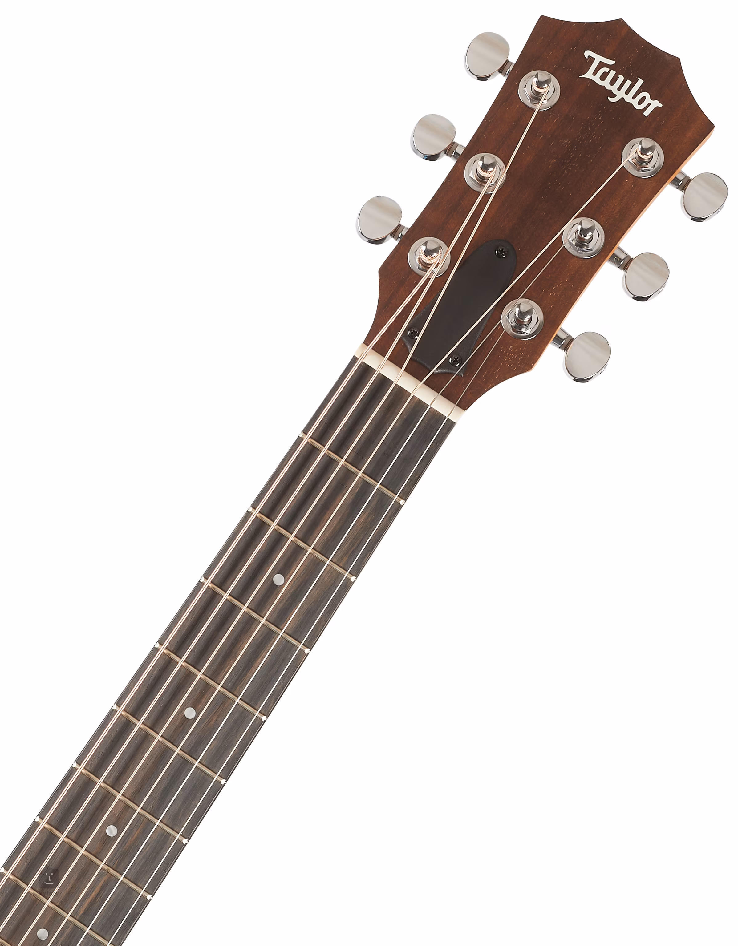 A hangolás stabilitását a húrok rögzítése a krómozott, öntött Taylor-mechanikában lévő NuBone nullbundon és az ébenfa fejlécben lévő micarta nyergén keresztül biztosítja. A hangszer stílusos megjelenését hagyományos elemek hangsúlyozzák a fekete koptató, a fekete és fehér gyűrűkből álló rozetta, valamint a fejléc copafera fából készült furnérja, amelyet a nyomtatott Taylor logó díszít.