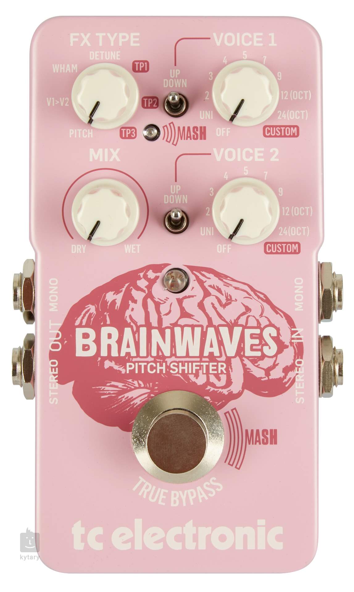 A Brainwaves Pitch Shifter egy polifonikus hangmagasságváltó kompakt pedál effekt formátumban a dán TC Electronic márkától. Számos nagyszerű stúdió modulációs algoritmussal rendelkezik (polifonikus hangmagasságváltás, detune/chorus, oktáv effekt szimuláció tremolo kar használata esetén), két teljesen független hanggal, amelyek megháromszorozzák a játszott motívumot (két oktáv tartományon belül mindkét irányban), az érintésérzékeny lábkapcsoló forradalmi MASH funkciója, amely egy expressziós pedálhoz hasonlóan működik (a TonePrint alkalmazásban bármilyen paraméter hozzárendelhető), valamint a TonePrint technológia (és az ingyenesen letölthető alkalmazás) előnyei.