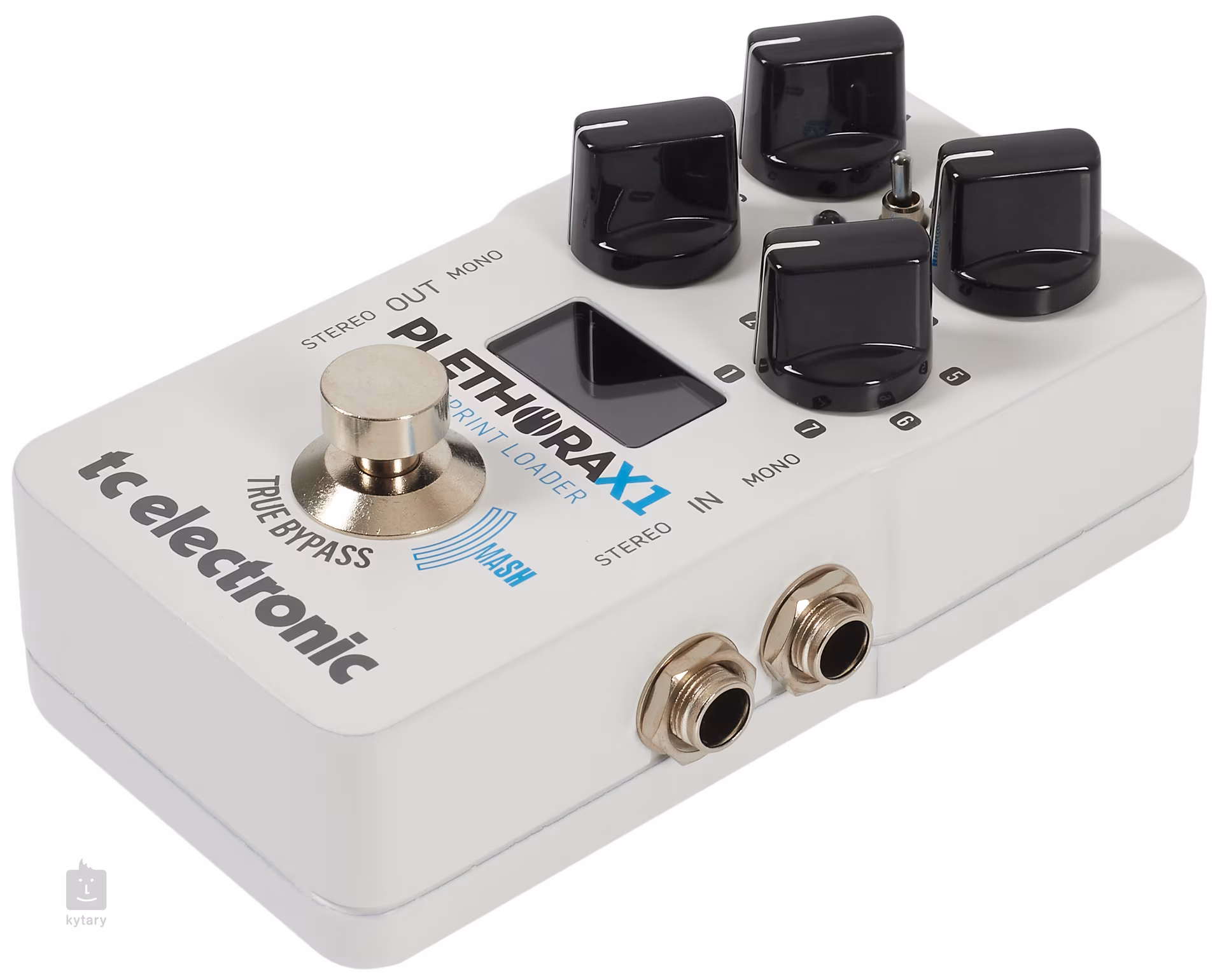 A PLETHORA X1 a dán TC Electronic márkától egy kissé eltérő gitár multieffekt, amely teljes mértékben kihasználja a digitális technológia előnyeit és rengeteg effektet kínál. A TonePrint alkalmazásban (ingyenesen letölthető) egyszerűen csak választani kell a gitáreffektek széles adatbázisából, majd Bluetooth-on vagy USB-kábelen keresztül betölteni a pedálba. Így a végtelenségig változtathatod az effekteket. Az egyes paramétereket ezután a dobozon található vezérlőkkel vagy a TonePrint alkalmazáson keresztül szerkesztheti, amely széleskörű szerkesztési lehetőségeket kínál - több száz paramétert szerkeszthet, hogy az effektek hangzását a felismerhetetlenségig átalakítsa, vagy belevetheti magát teljesen új hangzások létrehozásába, és létrehozhatja saját TonePrint-effektjeit.