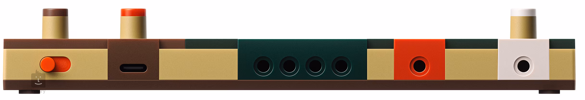 1x AUDIO stereo jack 3,5 mm, 1x MIDI OUT + 1x SYNC OUT jack 3,5 mm