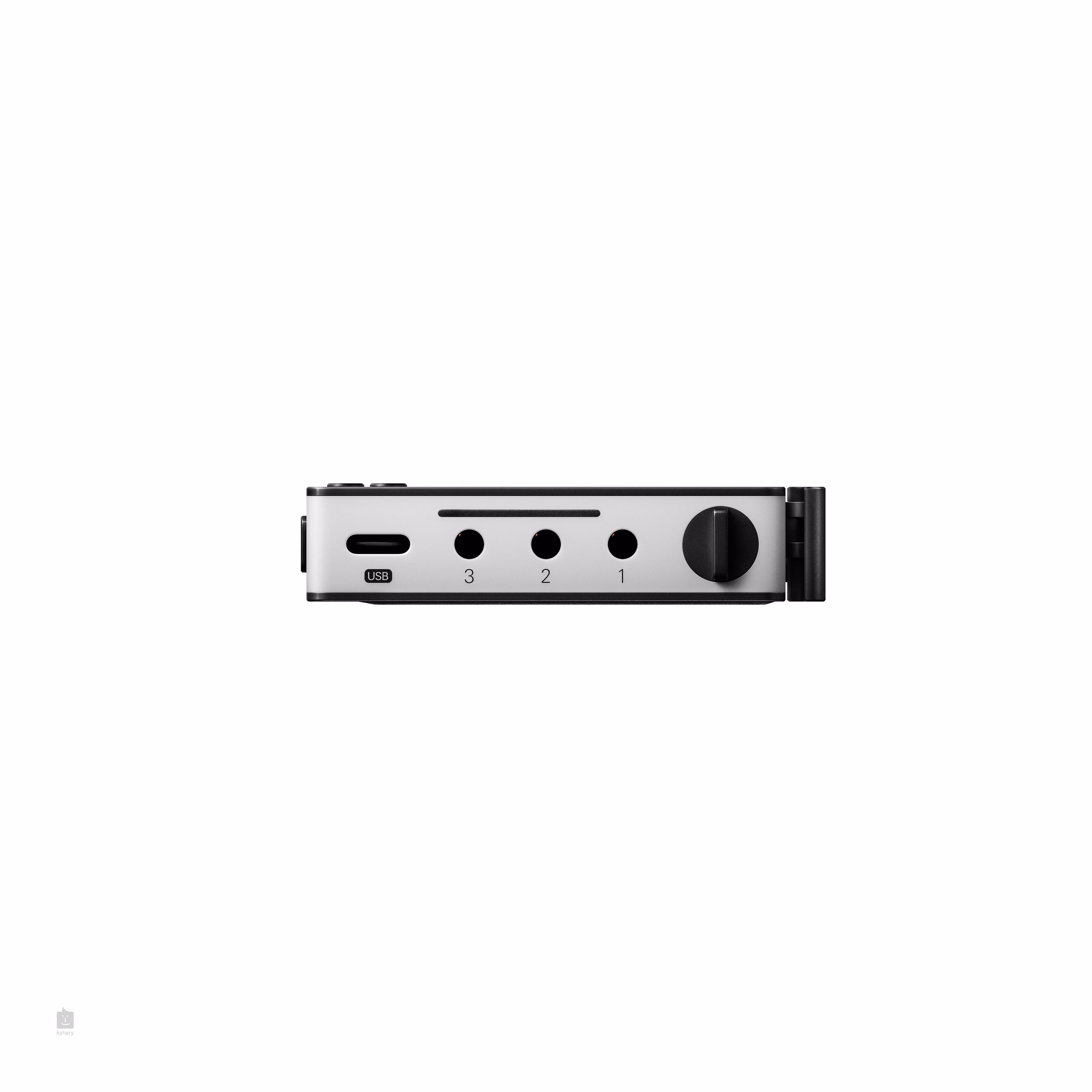 A készülék tápellátása USB-C porton keresztül történik. A csomag tartalmaz egy felhasználói kézikönyvet, egy 6,35 mm-es jack-adaptert, egy USB-C kábelt és egy műanyag borítást.