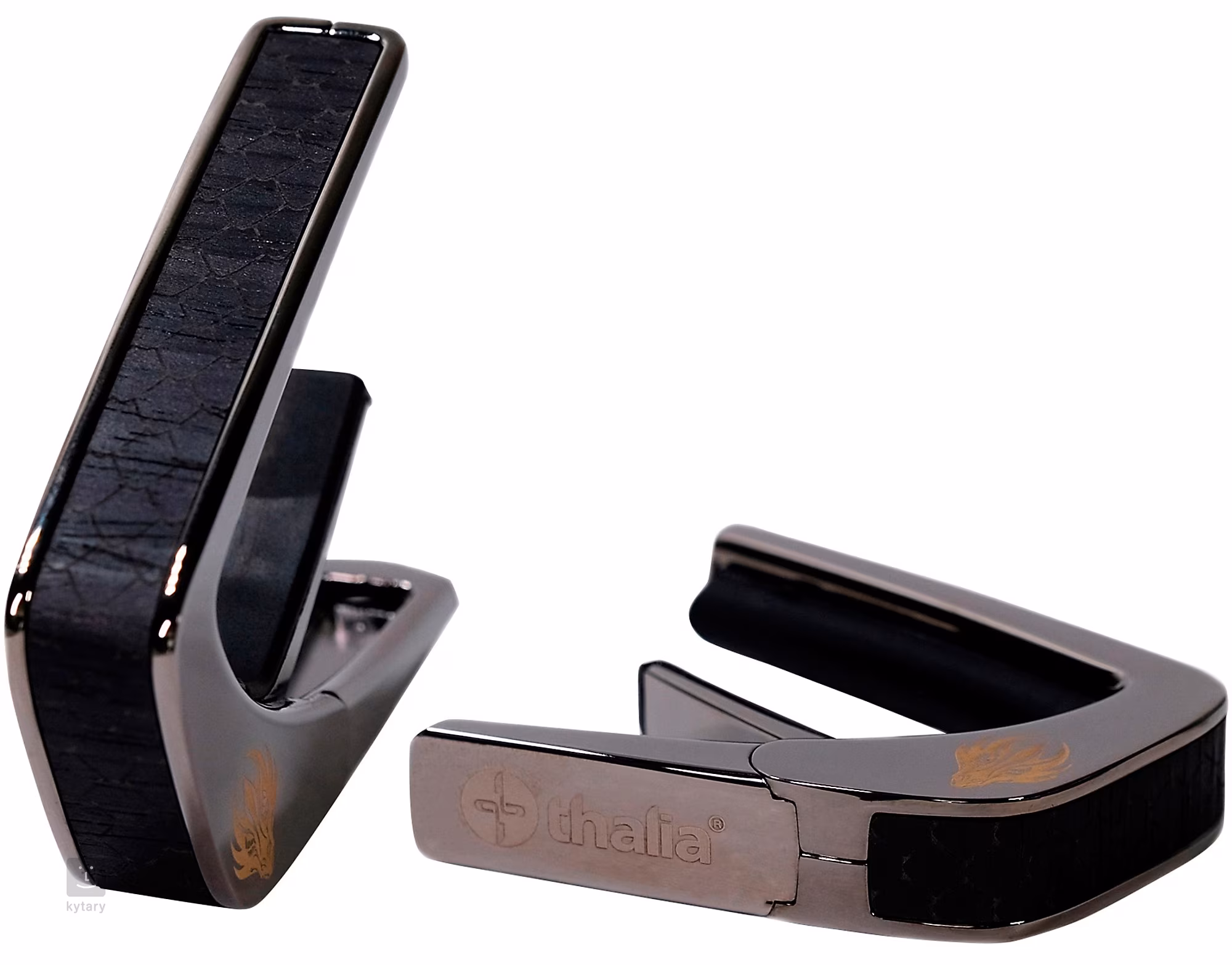 Ez a modell a Premium sorozatból származik, és elegáns dizájnnal rendelkezik. A capo fémtestét (fekete színben) sötét ébenfa díszítések ágyazzák, amelyeket sárkánypikkelyekre emlékeztető vésésekkel gazdagítottak. A dizájn teljessé tétele érdekében a fémtest mindkét oldalát egy-egy finom sárkányfej-dizájn díszíti. Egy teljesen egyedi capo, amely nem fog csak úgy eltűnni.