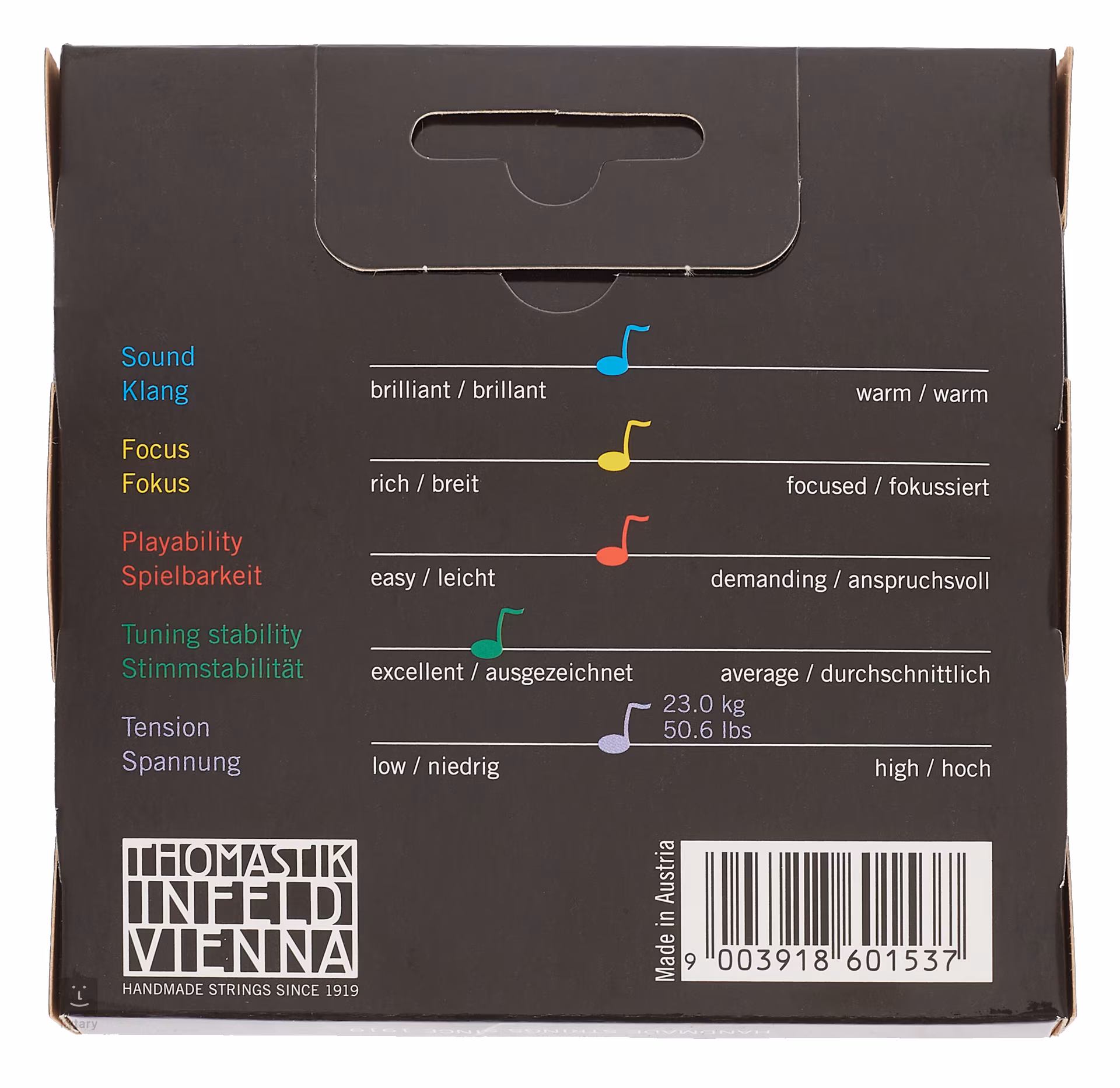 A Vision húrok tiszta, nyitott és nagyon tiszta hangzást biztosítanak a zenészeknek. Szintetikus magot használnak, ami nagyon kellemes játékélményt, hosszú élettartamot, rendkívül stabil hangolást és tonális hangolást tesz lehetővé. A tekercseléshez tiszta ezüstöt használnak. A golyóvég titánból készült.