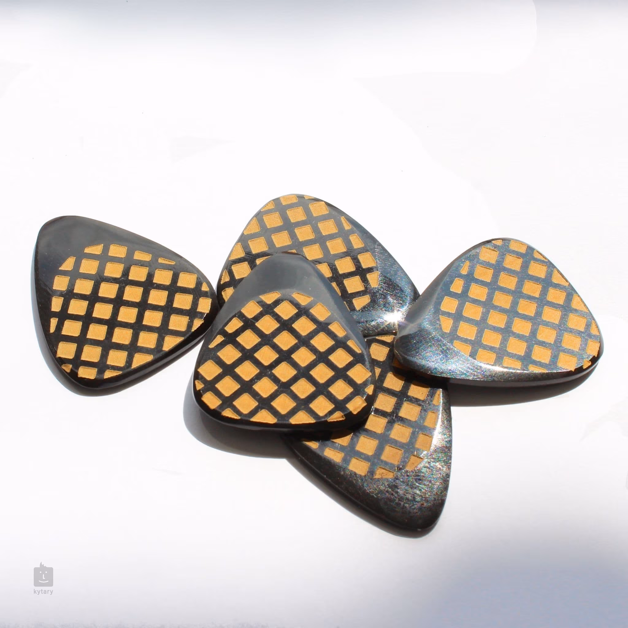 Akár ajándékot keres egy lelkes gitárosnak, akár csak a tökéletes hangzást keresi, és szeretné kipróbálni a szokatlan anyagokból készült pengetőket, a Timber Tonesnál megtalálja, amire szüksége van. Ez a pengető a Grip Tones kínálatából bivalyszarvból készült, ami meleg és kerek hangzást kölcsönöz neki. Standard formájú, 2,5 mm vastagságú, a hegye felé keskenyedő vastagsággal rendelkezik. A lézergravírozás szilárd, csúszásmentes fogást biztosít.