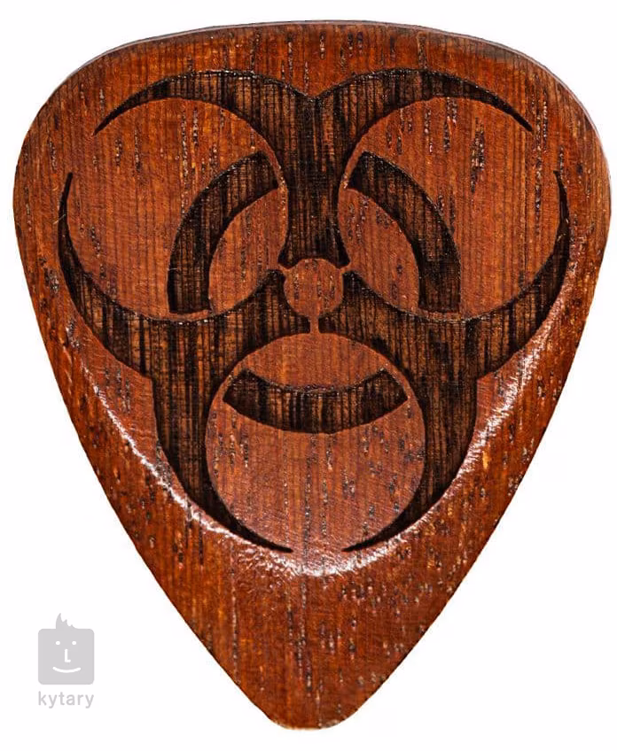 Akár ajándékot keres egy zenekedvelőnek, akár csak a tökéletes hangzást keresi, és szeretné kipróbálni a szokatlan anyagokból készült pengetőket, a Timber Tonesnál megtalálja, amire szüksége van. A Laser Tones sorozat Biohazard fa pengetője középkemény vasfából készült, amely frekvenciakiegyenlített hangzást eredményez. Vastagsága 2,5 mm, amely a hegye felé 0,7 mm-re csökken. A lézervágott motívum nemcsak stílusos dizájnt, hanem puha fogást is ad a pengetőnek. A pengető akusztikus és elektromos gitárhoz egyaránt alkalmas.