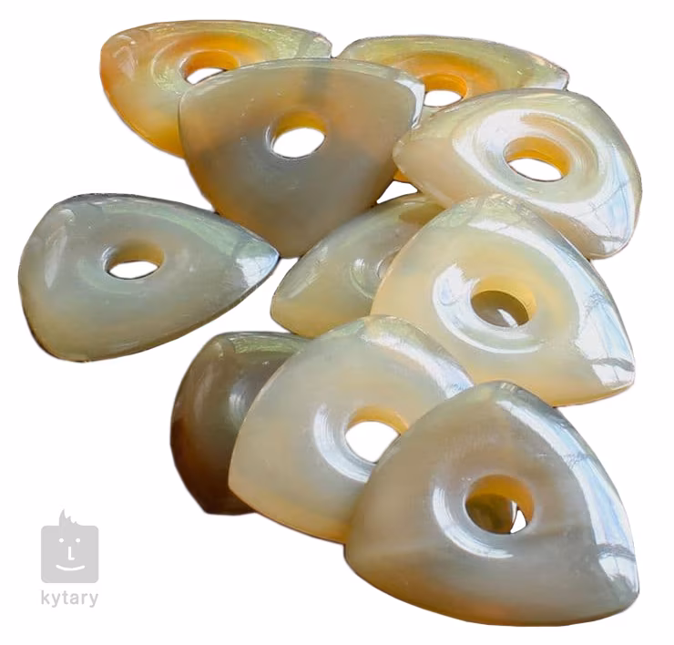 Akár ajándékot keres egy lelkes gitárosnak vagy basszusgitárosnak, akár csak a tökéletes hangzást keresi, és szeretné kipróbálni a szokatlan anyagokból készült pengetőket, a Timber Tones kínálatában biztosan megtalálja, amire szüksége van. A Moon Tones sorozat ideális basszusgitárosok vagy gitárosok számára, akik szilárd, szilárd és kényelmes fogású pengetőket keresnek. Méretük 27 x 27 mm, vastagságuk pedig 4,7 mm. Ez a modell bivalyszarvból készült, amely meleg és kerek hangzást eredményez.